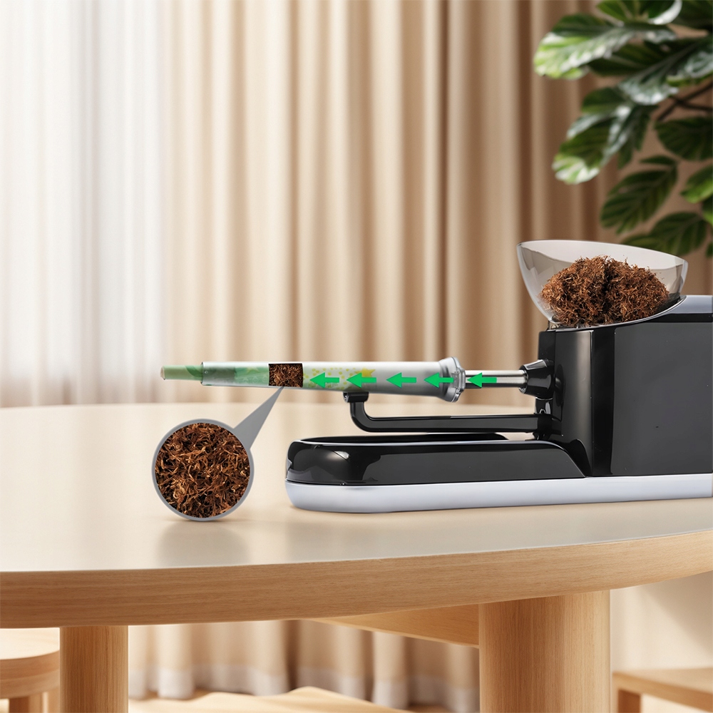 Эта электрическая машина для скручивания сигарет с конусом имеет ручку и 3 регулируемые степени затяжки, поэтому пользователи могут регулировать плотность конуса и сигареты в соответствии с фактическими потребностями, что очень легко настроить.
