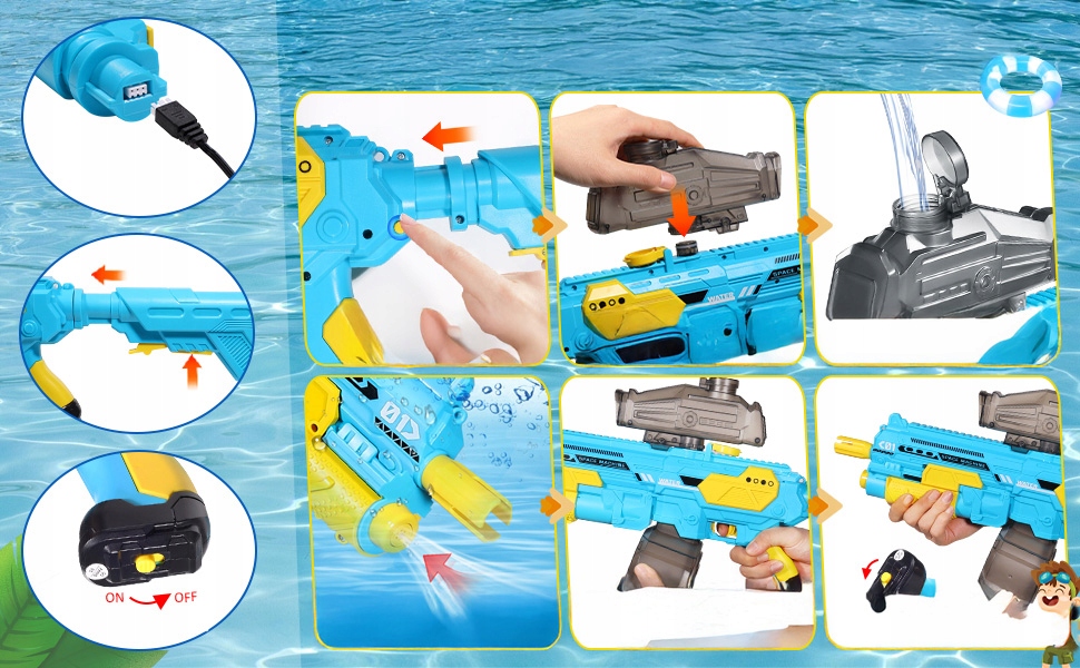 Откройте для себя электрический водяной пистолет, который гарантирует ваши дети незабываемые моменты радости и освежения в жаркие дни. Этот современный кувшин для воды является идеальным инструментом для водных сражений, который будет развлекать как на бассейне, так и в домашнем саду. Благодаря автоматической стрельбе воды с высоким давлением, каждая битва будет полна действий и волнения!