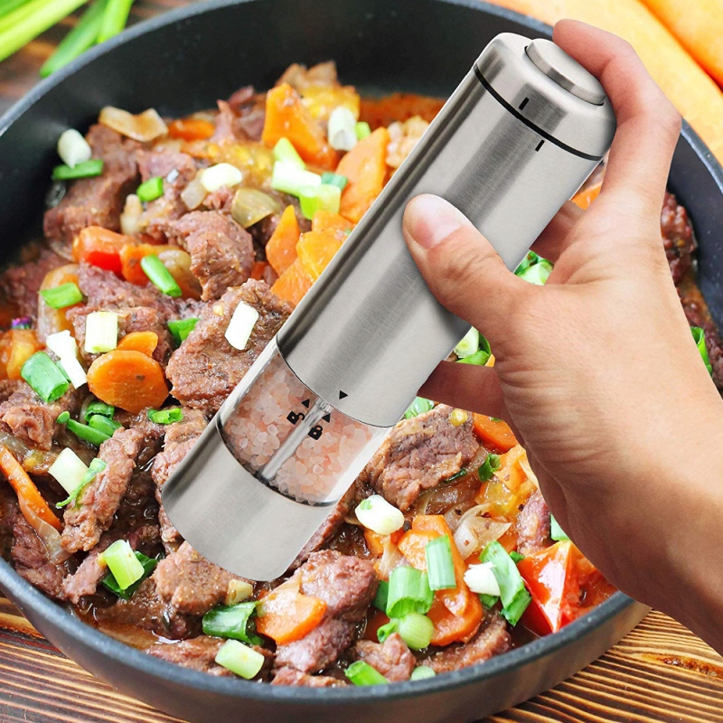 Электрическая мельница для перца и соли с корпусом из нержавеющей стали. Все мы знаем, что свежемолотые специи вкуснее. К сожалению, у нас редко есть время перемолоть специи вручную.