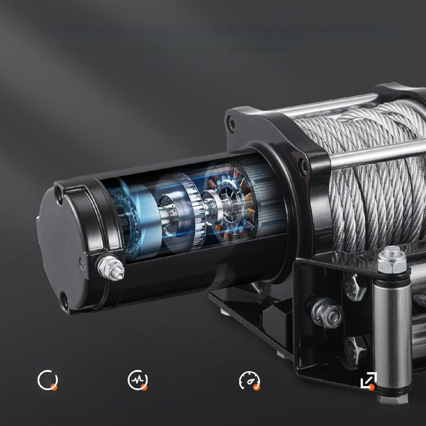 Лебедка использует медный двигатель с высоким уровнем 12 В с напряжением 12 В и очень высокой мощностью , поддерживая ежедневную экономию в полевых условиях. Точная 3-ступенчатая планетарная передача обеспечивает стабильную работу лебедки в течение длительного времени и оснащена свободной обмоткой.