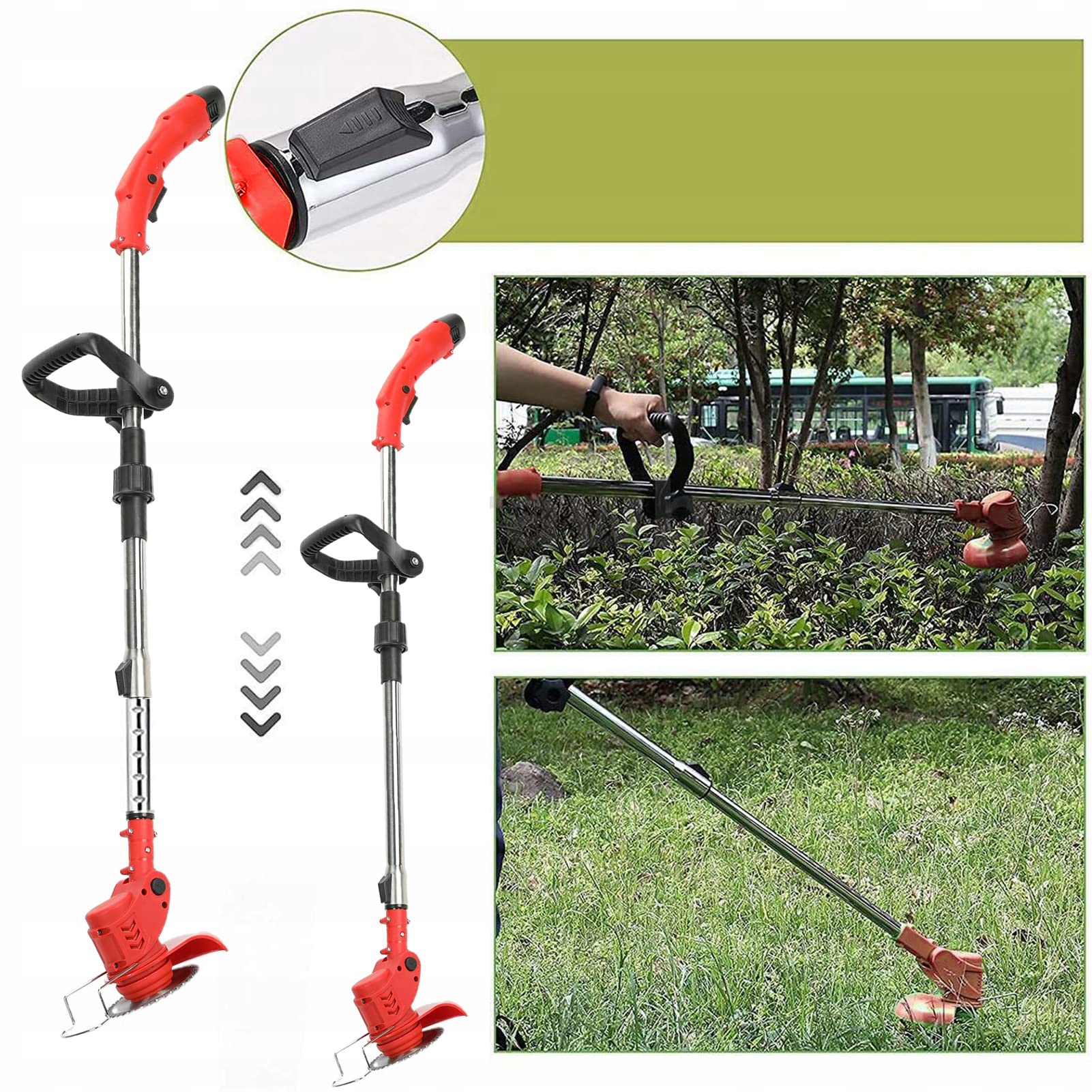 🌿🌿 【 Беспроводная травяная луга с батареей и зарядным устройством и безопасным дизайном】: Независимо от того, является ли это домохозяйкой или пожилым человеком, вы можете использовать ее без каких -либо проблем. Хотя угол обрезки может быть отрегулирован, мы добавили двойную кнопку, которая активируется после нажатия травы. Проект безопасности переключателя, который не позволяет детям предотвратить неправильное использование. Голова косилки имеет вращающийся раздел, который предотвращает примеси и защищает безопасность пользователей