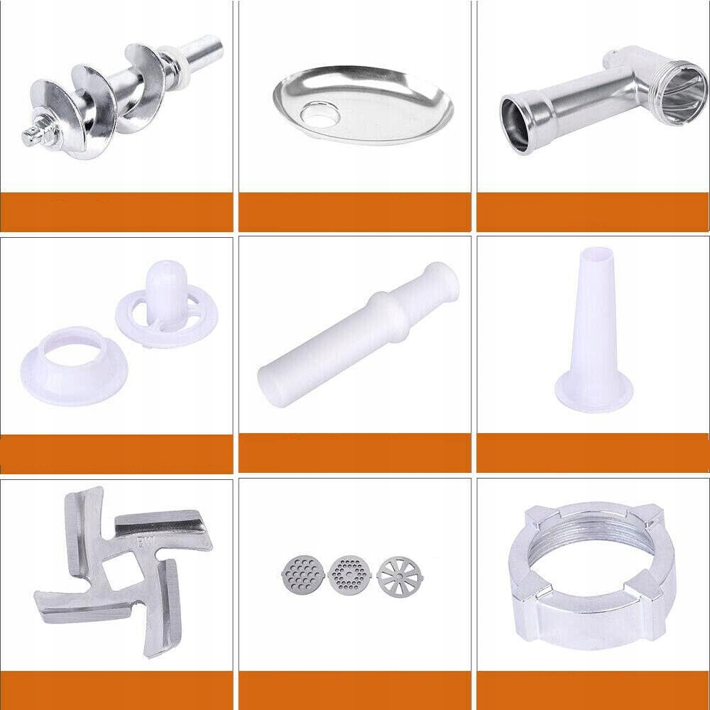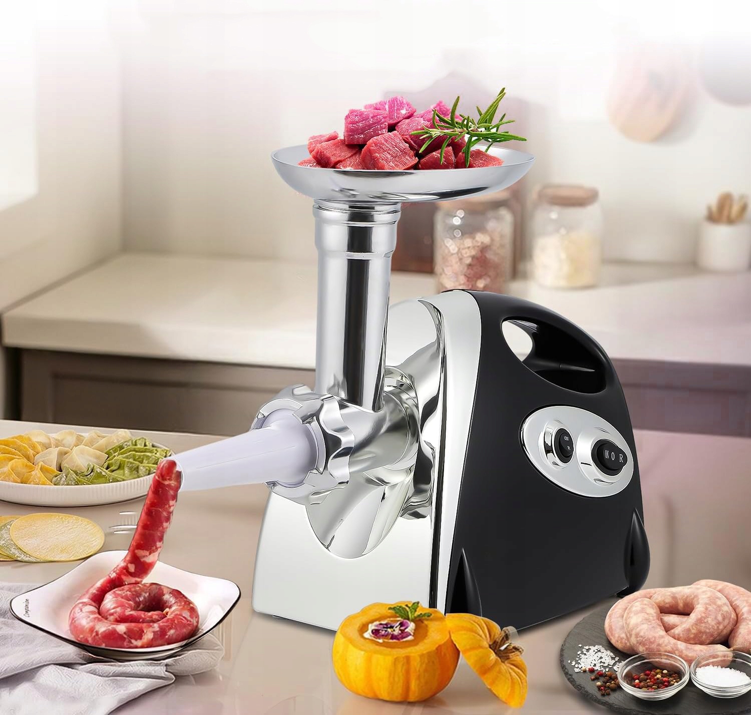 🥩 Мясовая шлифовальная машина - Эта мясорубка представляет собой шлифовальный инструмент с емкостью 2800 Вт, может измельчить мясо и овощи, идеально подходит для измельчения мяса и изготовления набивки. Используемый для измельчения, среднего и тонкого измельчения, с колбасами и кепкой, вы можете сделать гамбургеры, фрикадельки, фрикадельки, колбаски и многое другое. Вам понравится эта электрическая мясная машина. Шланг будет вращаться в противоположном направлении, а головка будет опустошена, легкая разборка для очистки и хранения для безопасного хранения мясных шлифований. Недоверная сталь и высококачественная медь имеет сильное антикоррозивное и долговечное качество, также имеет незвуковые резиновые ножки. Всегда высушите детали сразу после промывки, чтобы продлить срок службы