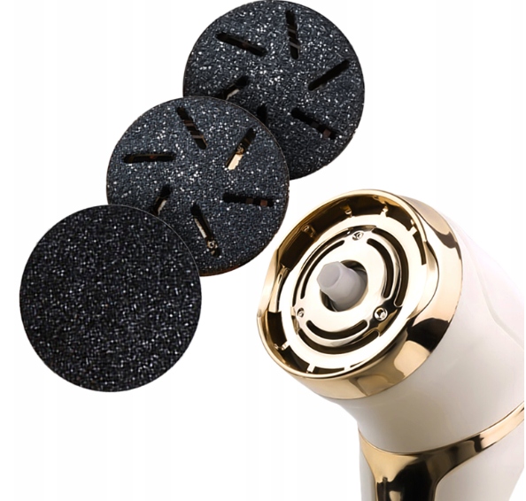 В комплект входят три круглые кварцевые насадки, которые обеспечивают комплексный уход за стопой и пятками. Каждая головка имеет разную тонкость зерна, что позволяет подобрать уход к индивидуальным потребностям и состоянию кожи.