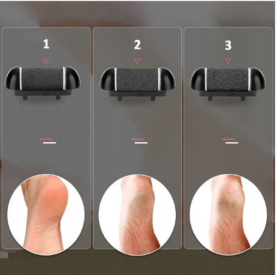 Получите шелковистую и гладкую кожу за несколько мгновений, без усилий. Электрическая пилка для ног имеет вращающиеся головки, покрытые кристаллическими частицами, которые мягко и решительно удаляют омертвевший, мозолистый эпидермис с кожи. Каждая головка предназначена для многократного использования и имеет разную степень зернистости! Благодаря этому вы можете выбрать головку с соответствующей абразивной способностью для ваших пяток.