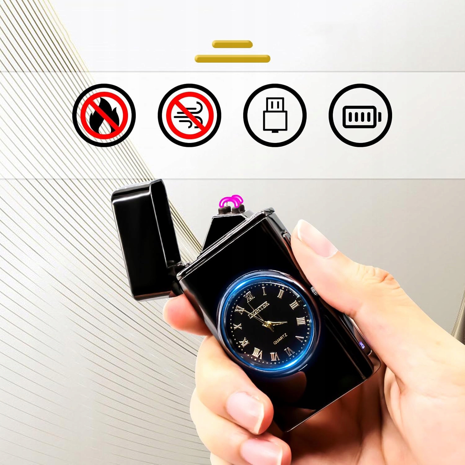 Электрическая плазменная зажигалка с часами, возьмите фонарик