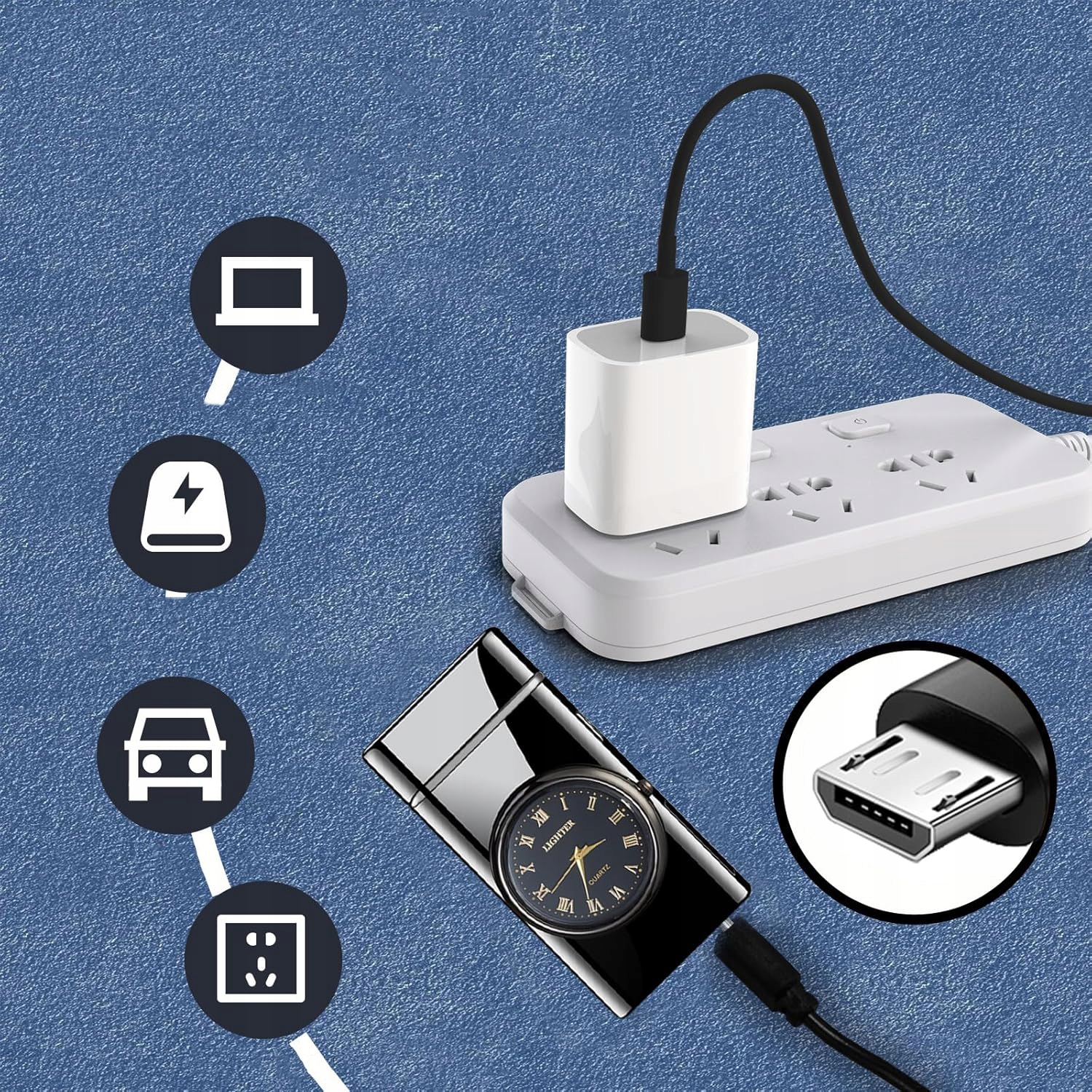 💡💡💡 Зажигалка с фонариком ▶ Это больше, чем просто зажигалка, это еще и инструмент выживания для наружного освещения. Фонарик расположен в нижней части зажигалки. Закройте крышку прикуривателя и нажмите кнопку, чтобы включить/выключить фонарик. При полной зарядке яркость составляет 75 лм, и вы можете использовать его в течение 1-1,5 часов. Это фонарик, идеально адаптированный к уличным условиям, подходящий для кемпинга, походов, выживания и других случаев.