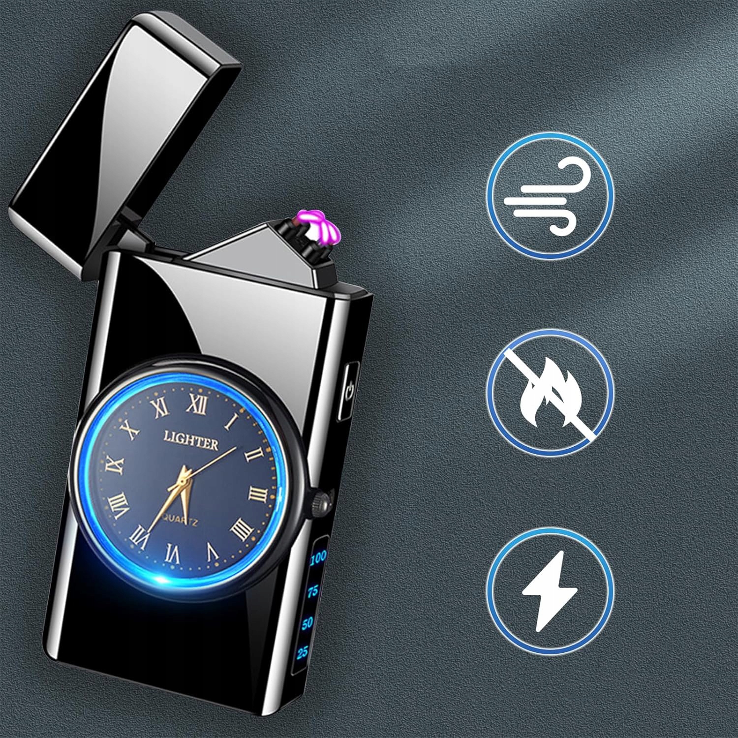 ⌚⌚⌚ Уникальная ветрозащитная зажигалка ▶ Превосходная электронная зажигалка с двойной дугой работает примерно в 5 раз быстрее, чем традиционная электронная зажигалка с одной дугой, а плазменная зажигалка с двойной дугой обладает сильной устойчивостью к ветру и может также эффективно использоваться на открытом воздухе. Зажигалка изготовлена из цинкового сплава, она очень крутая, устойчива к падениям, износостойкая, долговечная и имеет определенную коллекционную ценность.