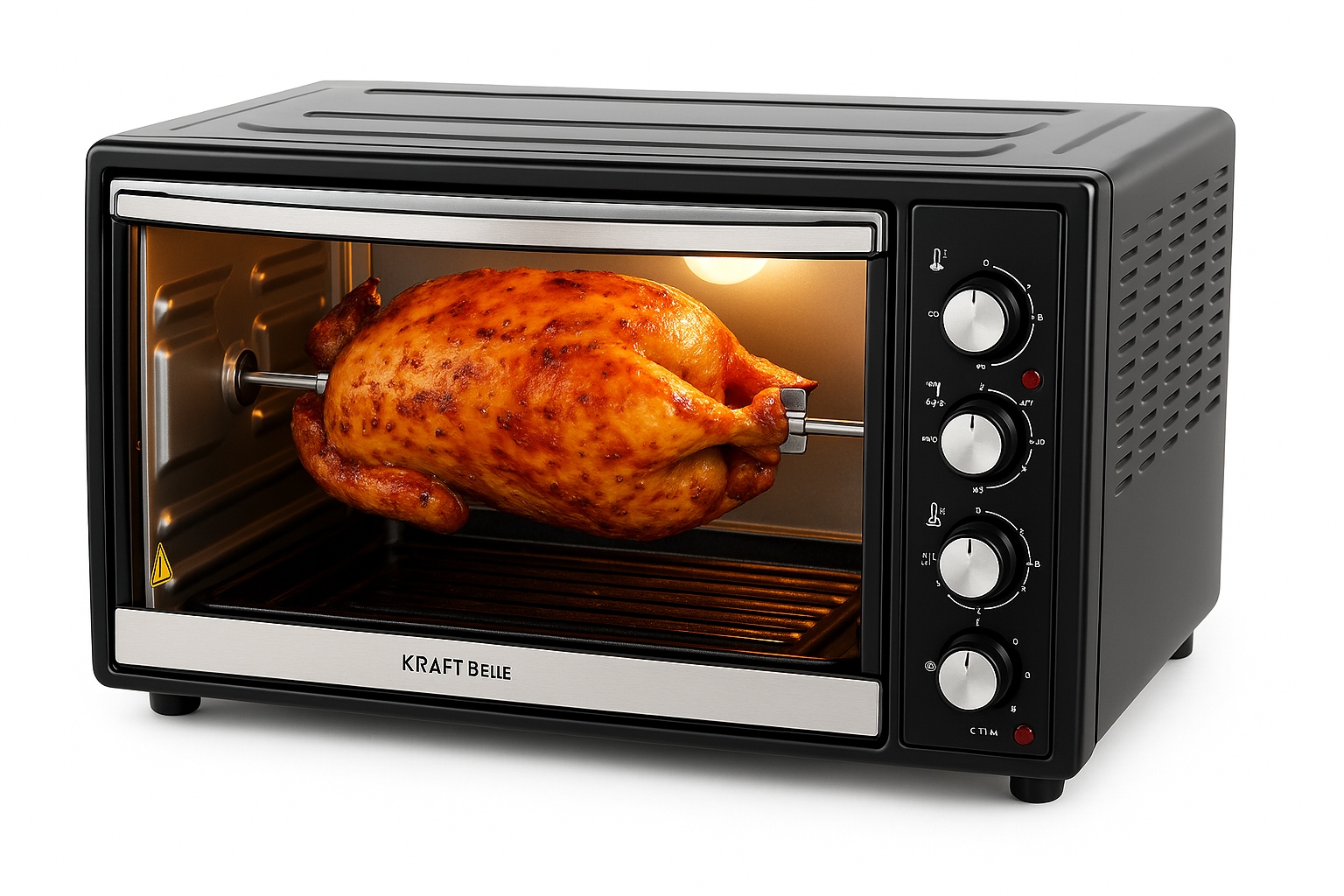 <ул>Оснащенная мощным нагревательным элементом мощностью 2000 Вт и системой термоциркуляции, плита обеспечивает равномерное распределение тепла, что позволяет идеально пропекать блюда, сохраняя их сочными внутри и хрустящими снаружи. Функция гриля с автоматическим вращением позволяет приготовить идеально подрумяненную курицу и другие мясные деликатесы.