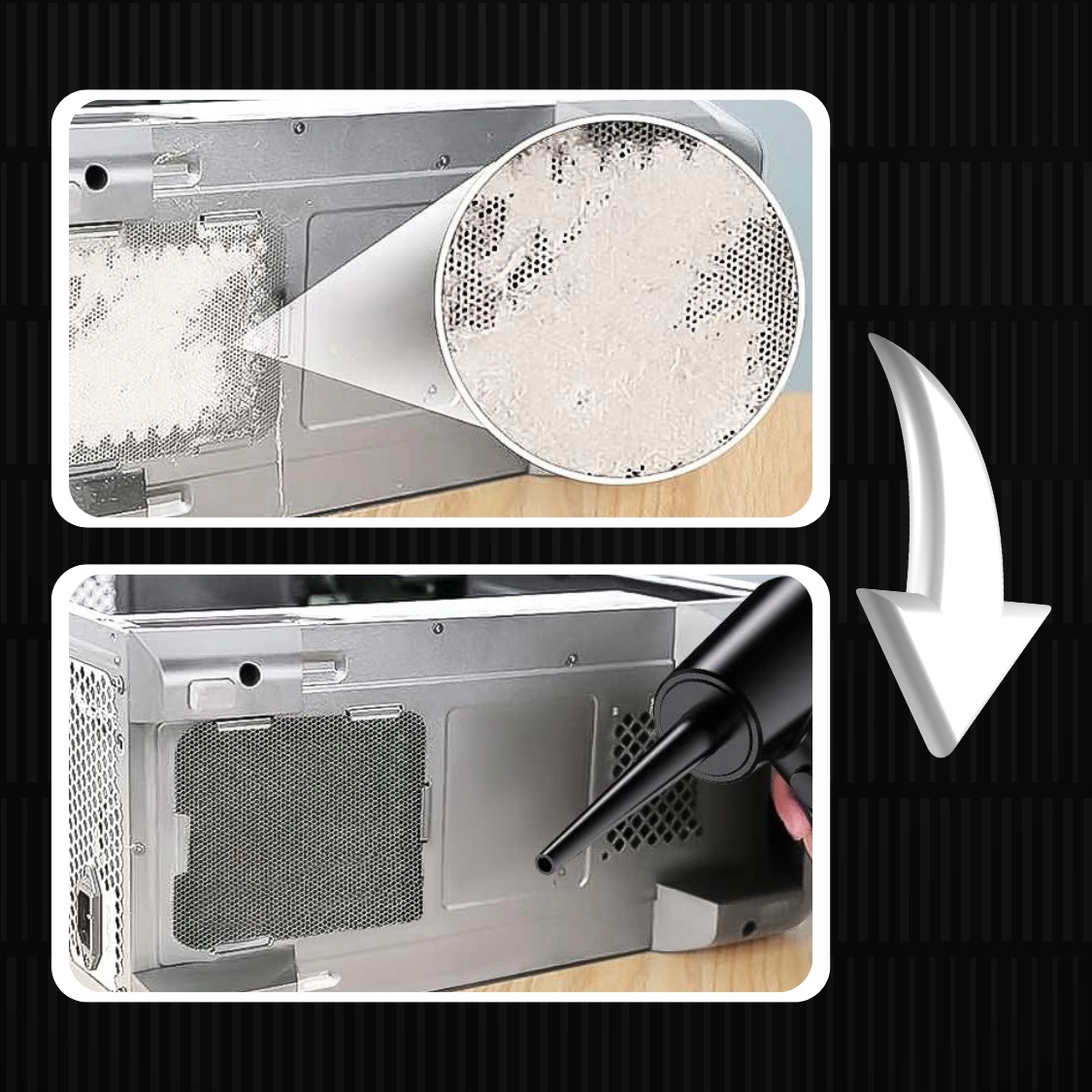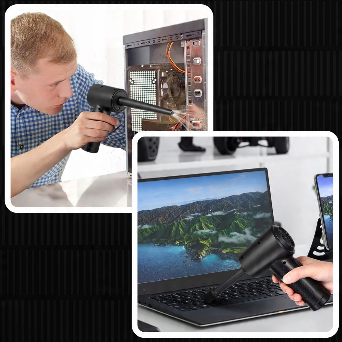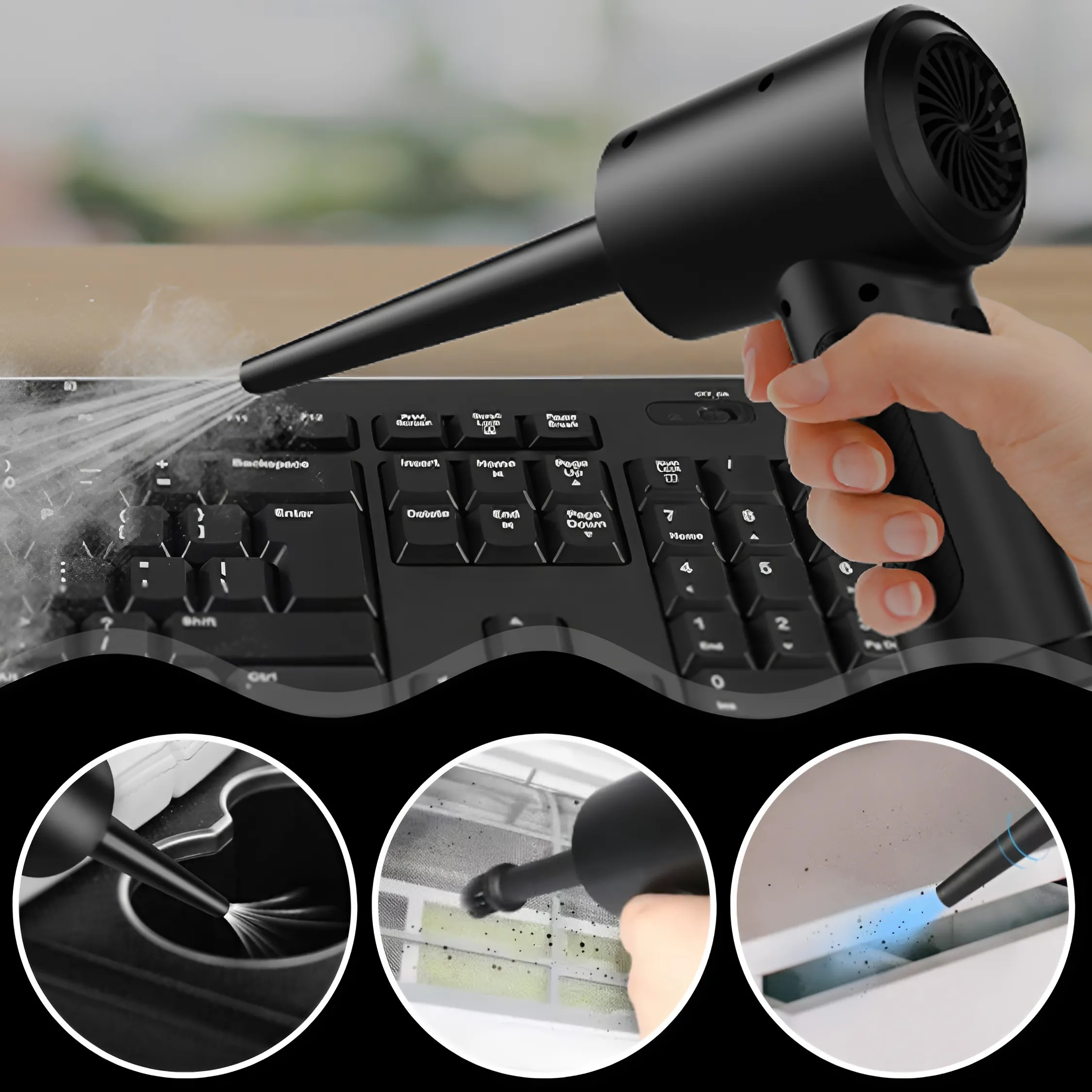 ✔️Точная очистка: Мощный поток воздуха позволяет устройству эффективно удалять грязь даже из труднодоступных уголков и щелей в электронике или офисном оборудовании.