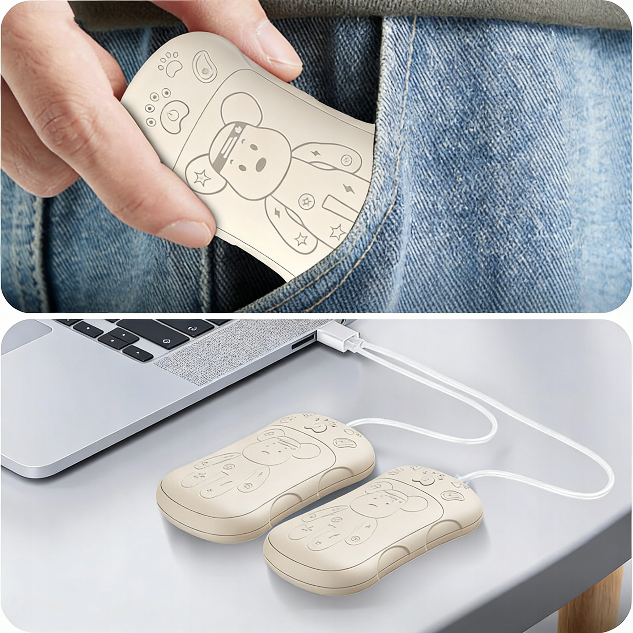 Набор из 2 электрических грелок для рук имеет сильную магнитную функцию, которая позволяет легко соединять/разделять их, как грелки для рук размером с ладонь. Эргономичный комфорт, удобный захват, милый брутальный дизайн в виде медвежонка. Сертифицированная по безопасности система контроля температуры, тысячи полированных внешних материалов, гладкие и теплые, одна кнопка для всех операций. Карманный и компактный дизайн, чрезвычайно удобный для переноски и хранения.