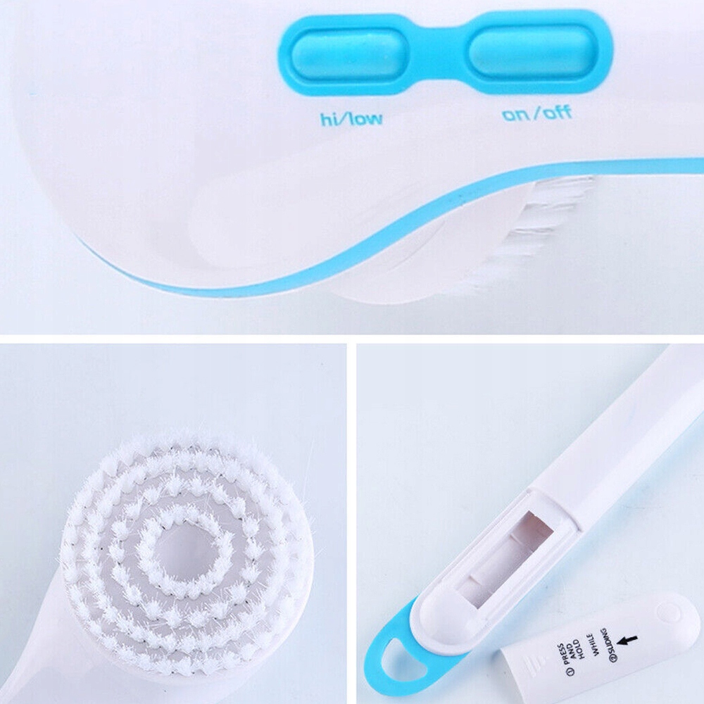 [5 насадок с разными функциями]💦 Оснащен 5 насадками с разными функциями: силиконовая массажная щетка, щетка с мягкой щетиной , щеточка для душа и щеточка для отшелушивания. Глубокая чистка, удаление сильных пятен, чистка силикона, удобный браслет на щиколотке. Подходит для всех типов кожи, выглядит моложе и уставшей.