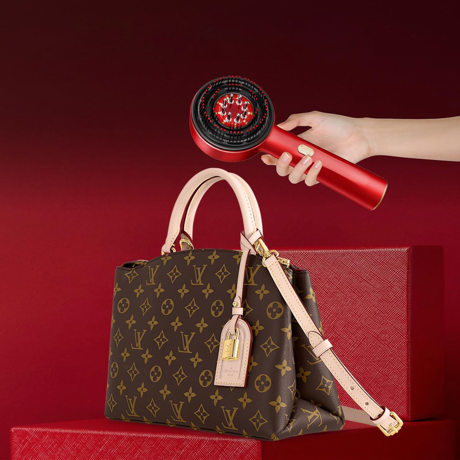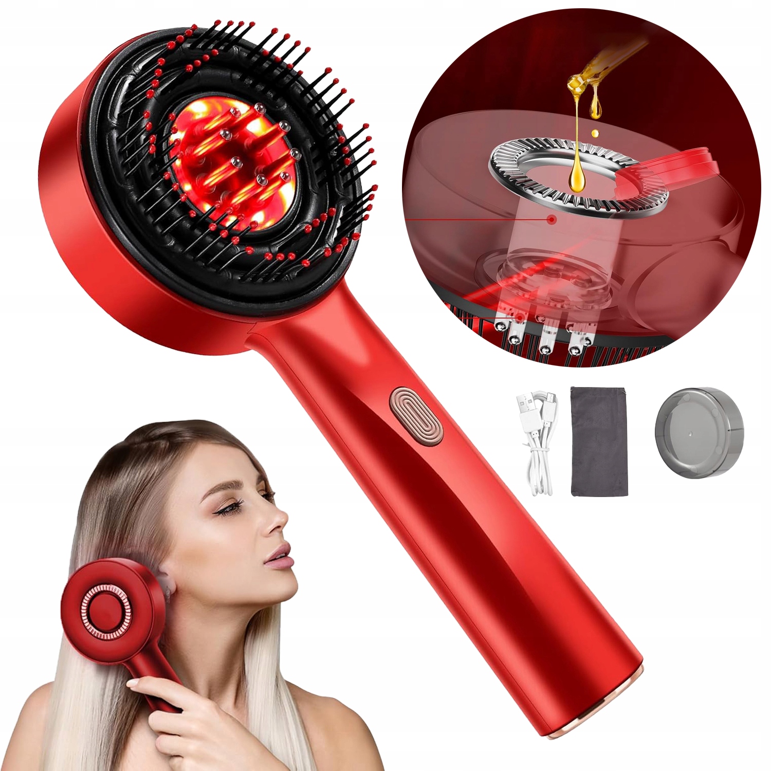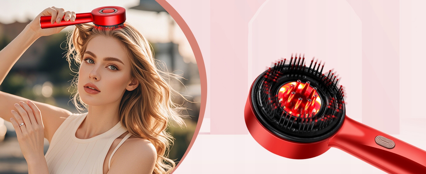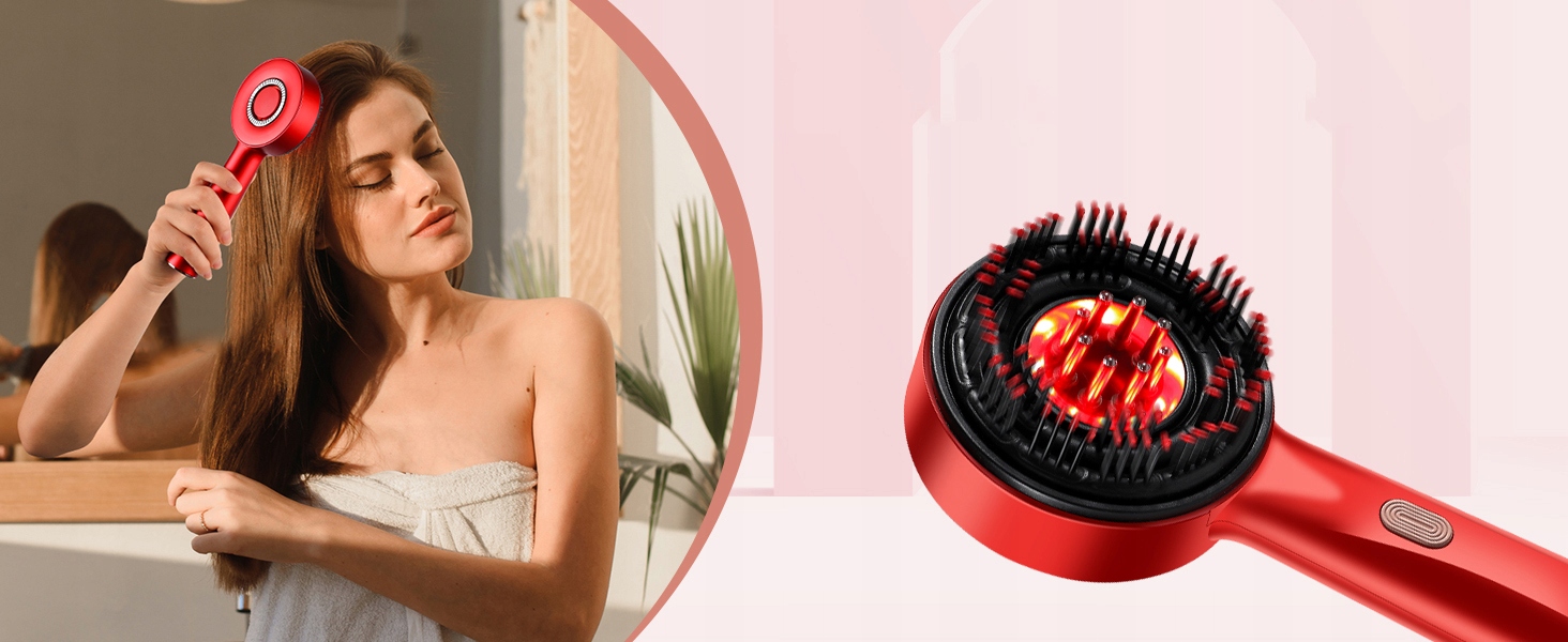 ⭐⭐Электрическая щетка для массажа кожи головы, щетка для массажа кожи головы 2 в 1 и аппликатор масла для волос, портативный массажер для волос с красной подсветкой, 3 режима массажа кожи головы для ухода за кожей головы и роста волос (красный), водонепроницаемость IPX7⭐⭐