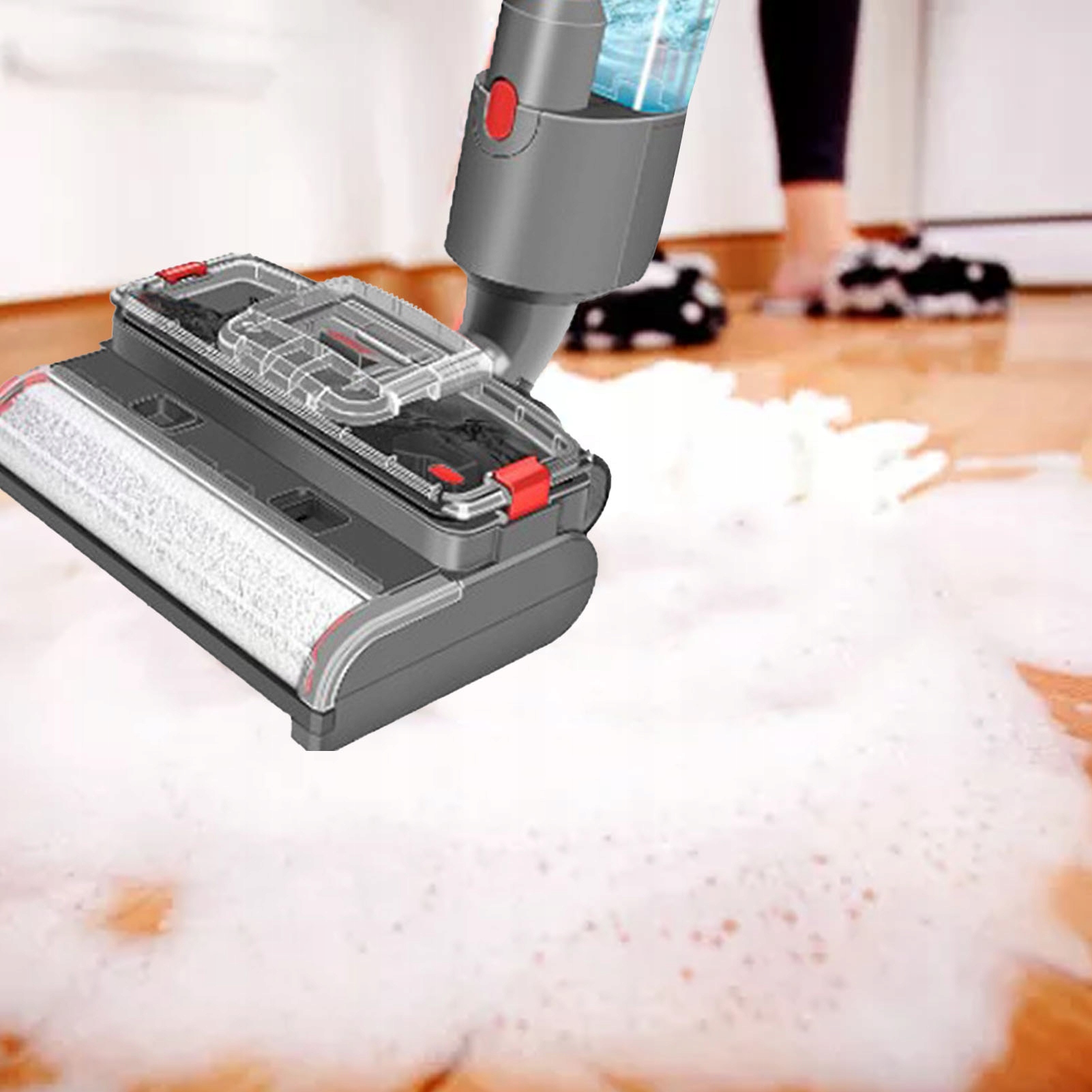 2. Многофункциональный дизайн: электрическая насадка для швабры не только легко пылесосит, влажные и сухие полы, но также имеет режим мытья, который позволяет легко переключаться между чисткой полов и мытьем их. Многофункциональные возможности делают его идеальным помощником в любой домашней работе.