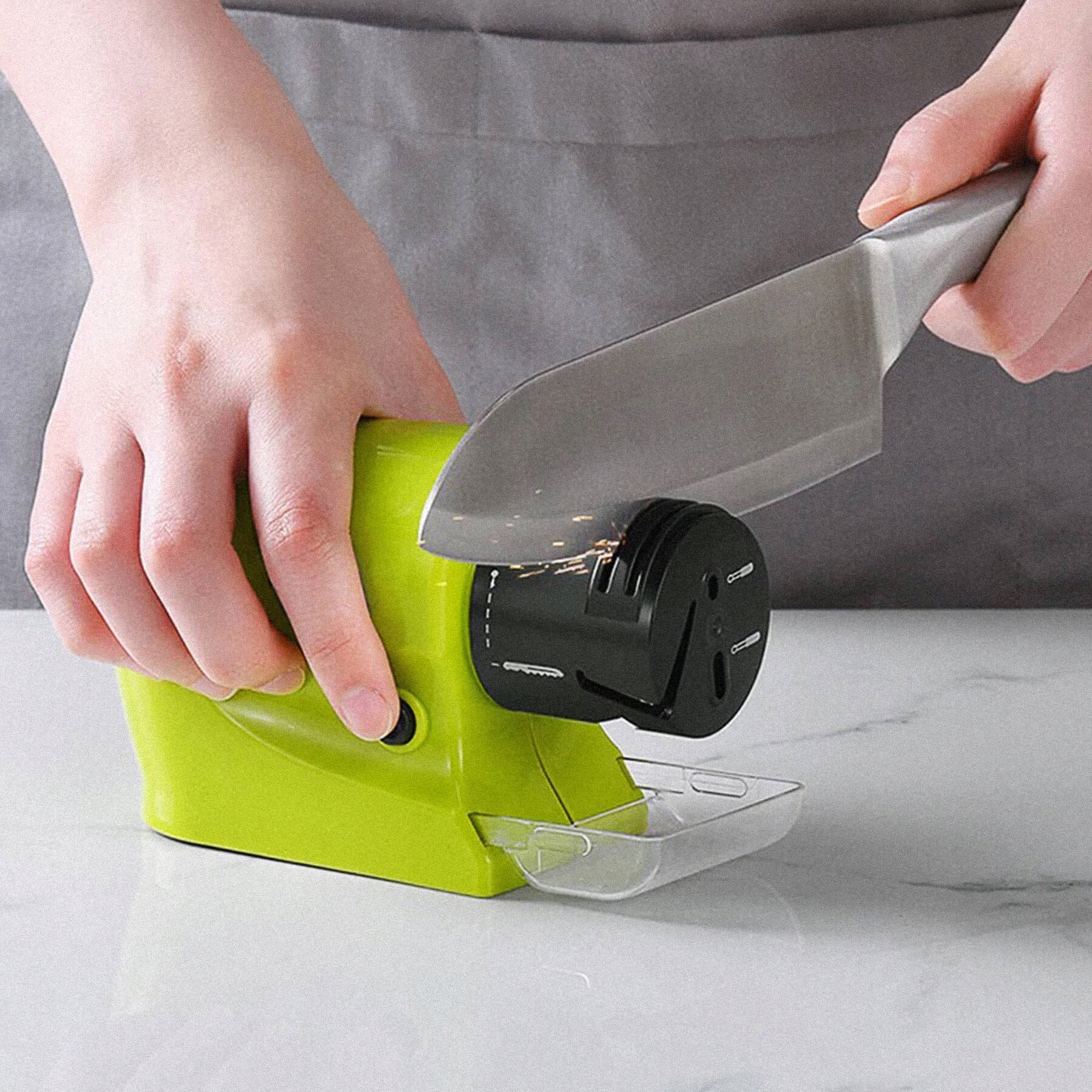 - Современная электрическая точилка для ножей, оснащенная кнопкой мгновенного включения/выключения.