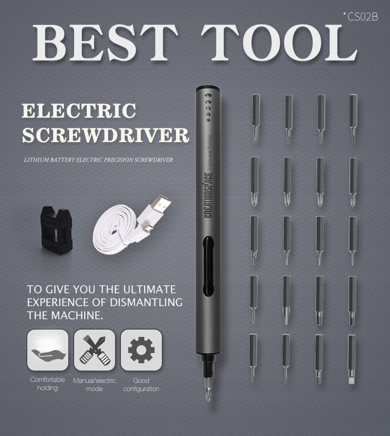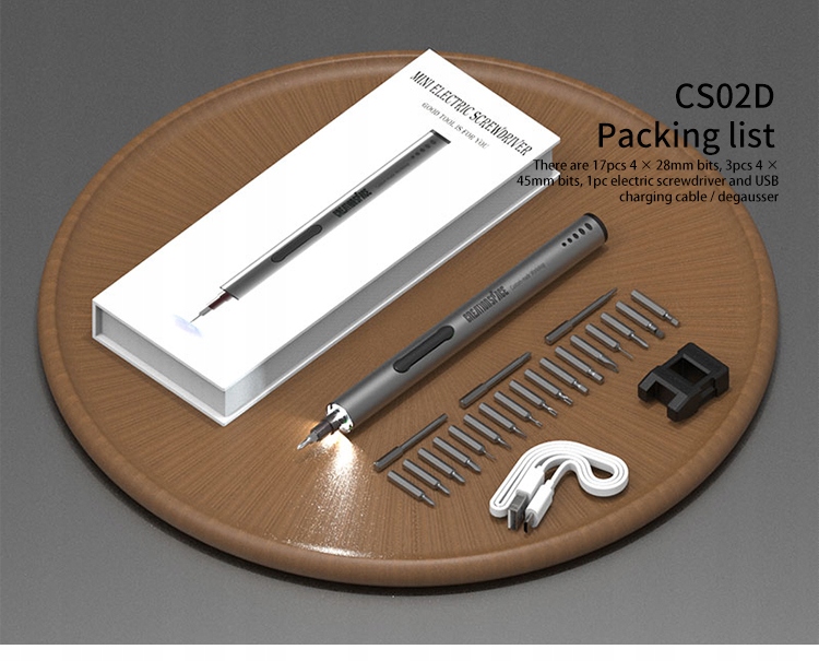 Надежная беспроводная отверткаCREATIONSPACE ZPJ1802A CS02D с эффективным аккумулятором 260 мАч и 20 битами, намагничивателем и практичной упаковкой.
