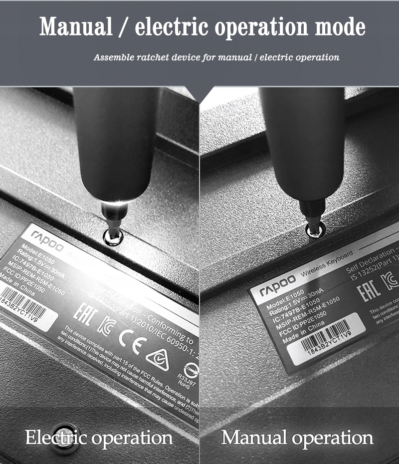 Отвертка имеет сверхтихую муфту с крутящим моментом 0,25-0,35Нм в электрическом режиме и 3Нм в ручном режиме.
