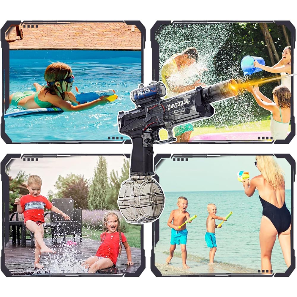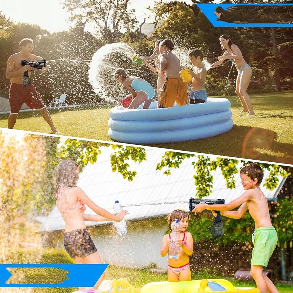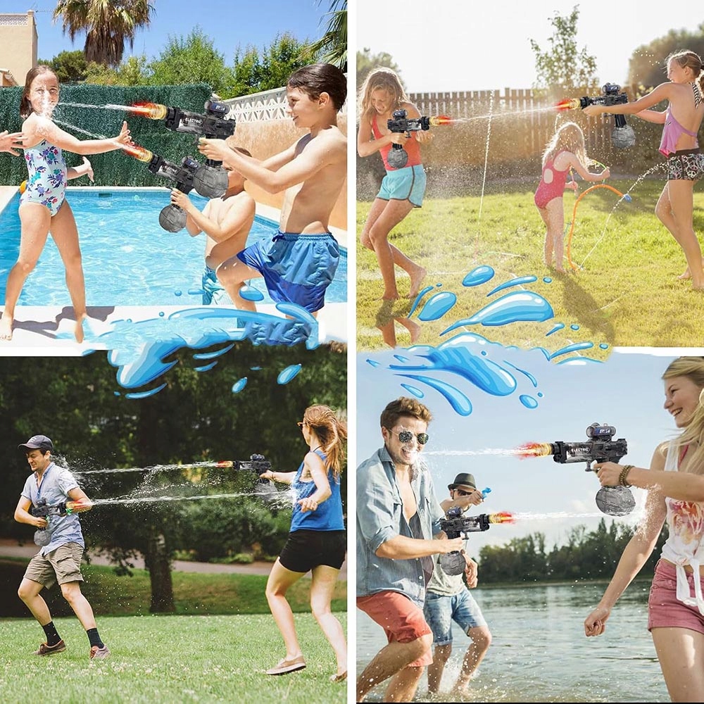 Играть дольше без перерывов! Наш светодиодный водяной пистолет имеет прочную батарею на 1200 мАч, которая обеспечивает до 35 минут непрерывного развлечения на одну зарядку. 🕒 Наслаждайтесь дольше веселья на солнце с семьей и друзьями! 🌞👨👩👧👦