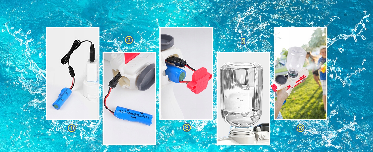 - ⭐Откройте крышку, наполните резервуар водой и поверните соответствующую бутылку, затем нажмите на спусковой крючок, чтобы автоматически стрелять очередями. аккумулятор.