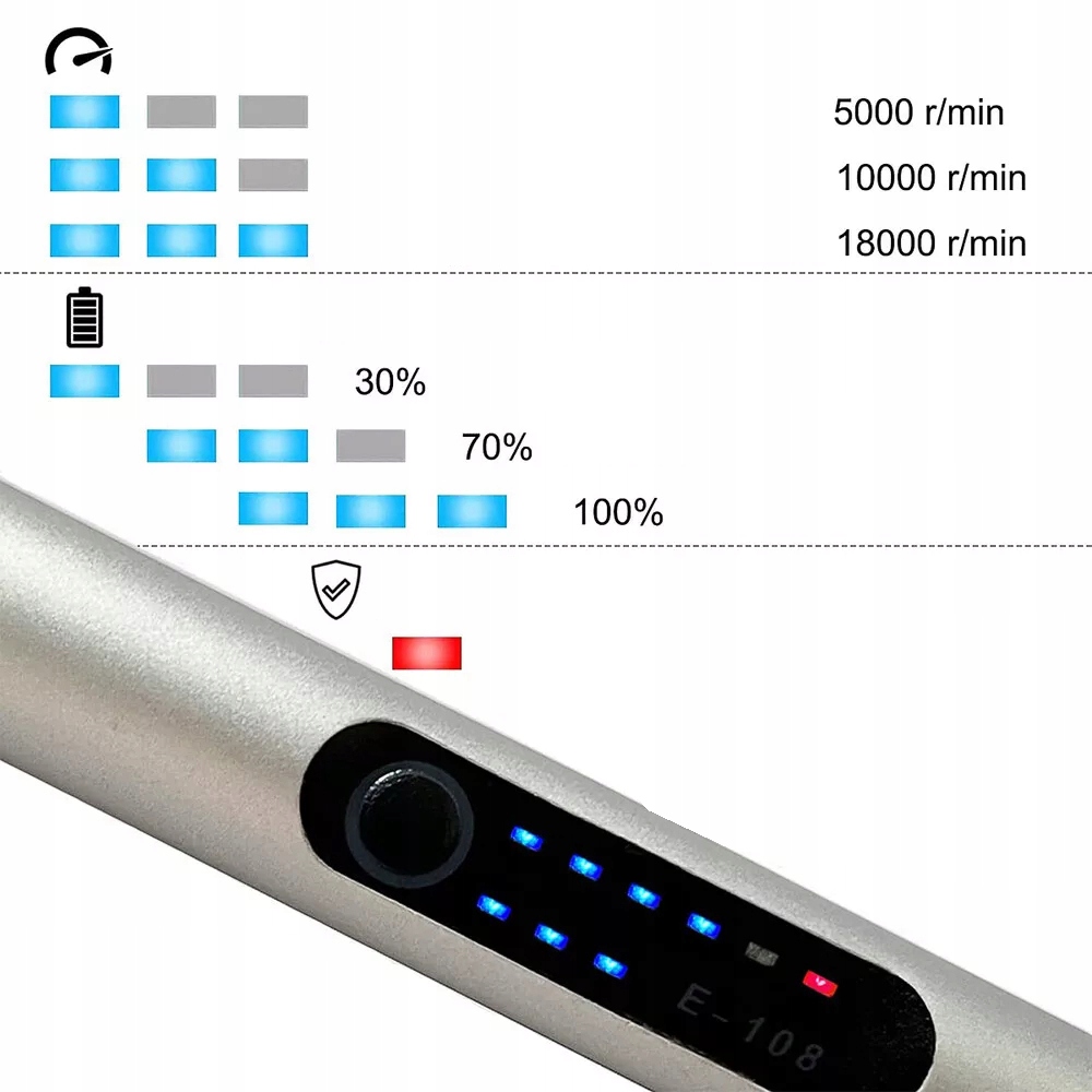 - 3 Регулируемые уровни скорости (5000-10000-18000 об/мин), Вы можете настроить свою рабочую скорость в различные приложения.