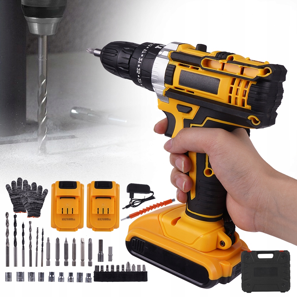 - ✔, оснащенных двумя батареями 1200 мАч, может противостоять длительному использованию и может прикрутить около 300 винтов, просверлить 30 Хол в металле и просверлить 35 отверстий в стене.