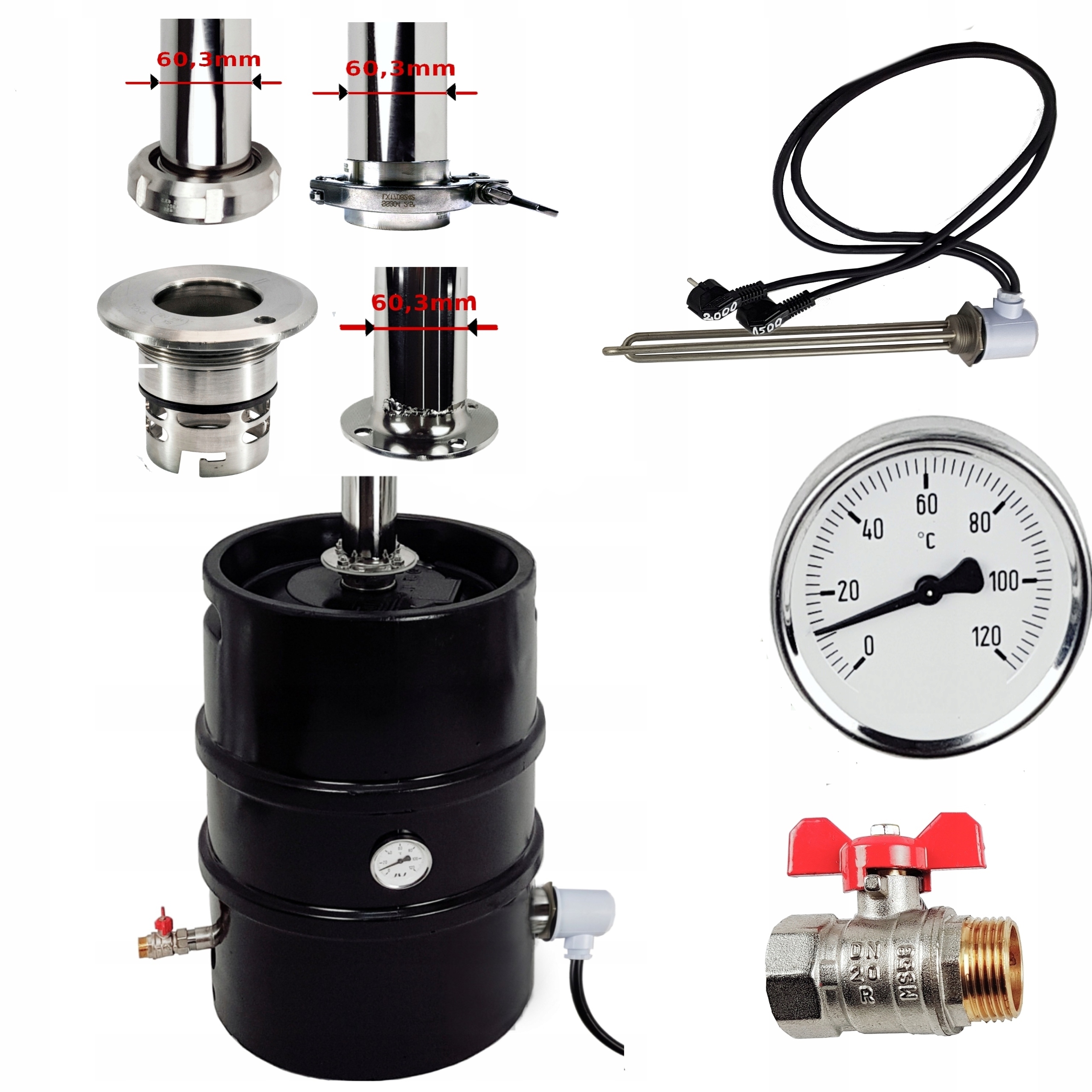 Электрический дистиллятор 180 см. Колонка высоты FI60,3 мм - 6 холодных пальцев 2 выступающие + ствол h1> Кег 50L или 30L Изолированная изолированная изолированная, готовая к работе h1>