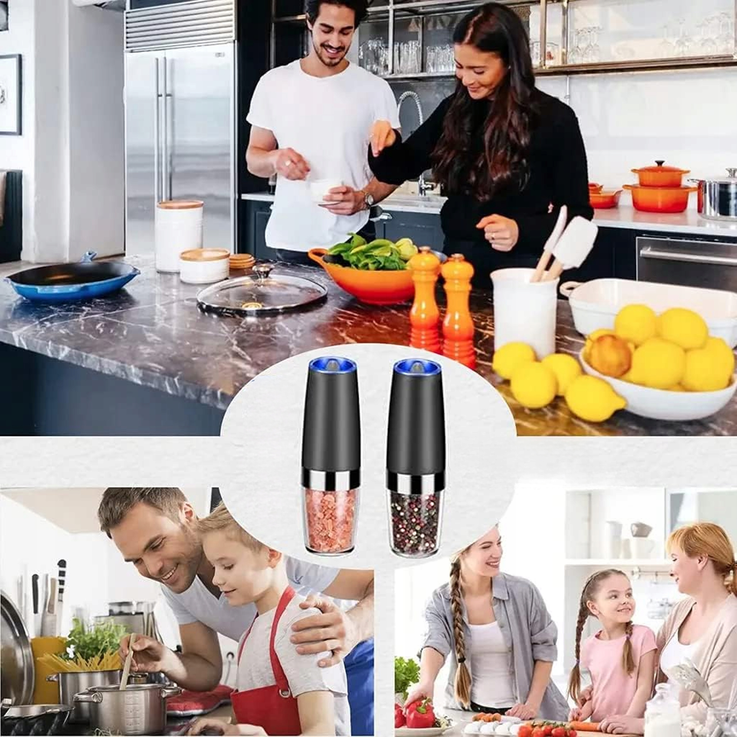 Набор из 2 гравитационных электрических мельниц для соли или перца. Очень просто в использовании! Просто переверните шлифовальную машину с ног на голову и автоматически начнет работу, наклонится и прекратите шлифовать.