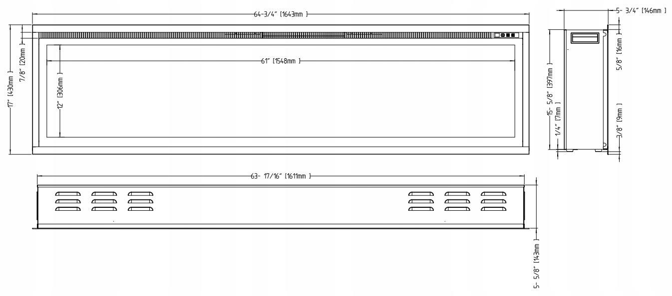 Электрический настенный светодиодный камин / встраиваемый ROYAL 65
