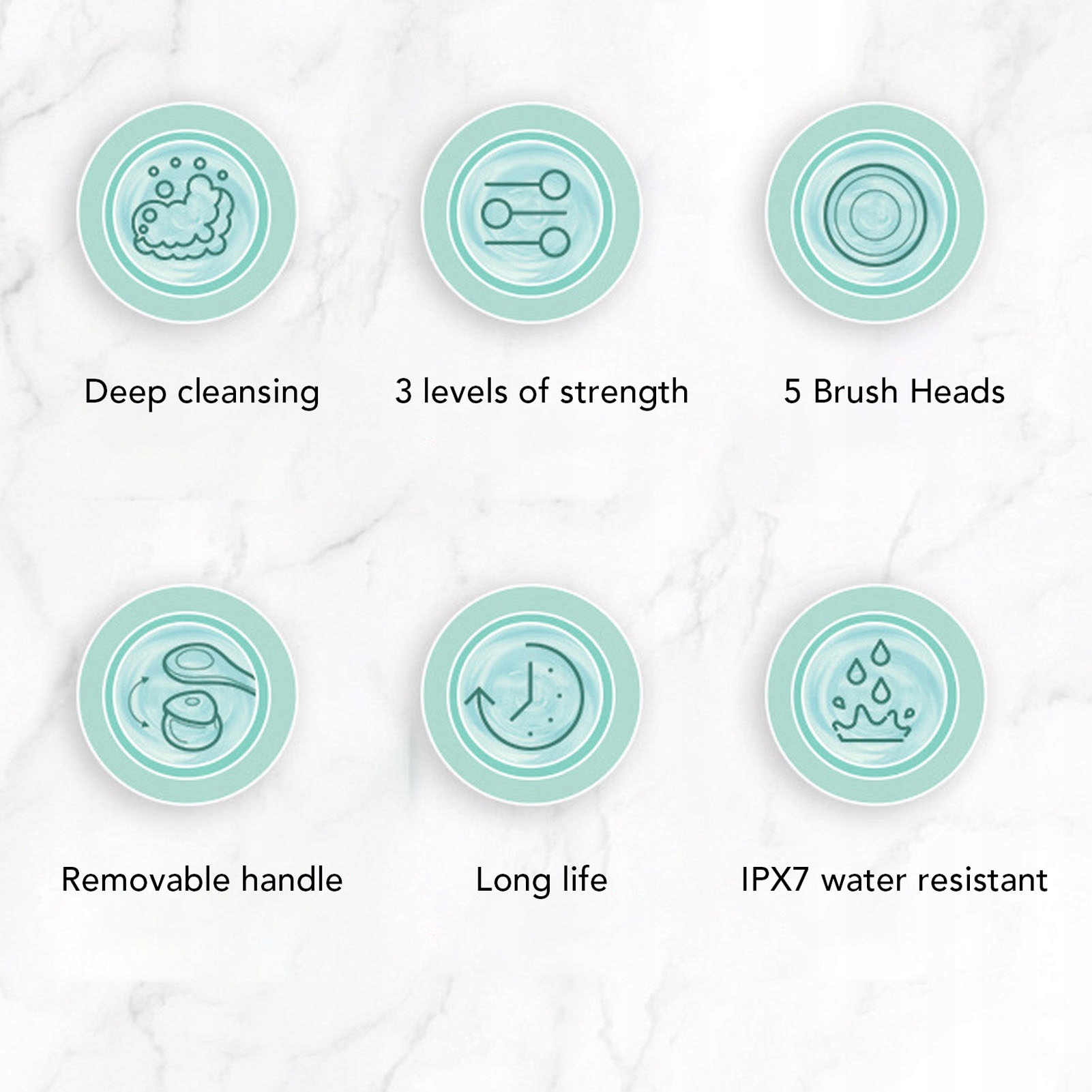 3. 5 Отключенные головки щетки: щетка в душе имеет 5 съемных головок щетки, в том числе глубокая чистящая щетка, силиконовая чистящая кисть, комфорт для душа, отшелушивающие щетки для ног и грязь, которая эффективно удаляет загрязнение тела, масла, мертвая кожа и даже отшелушивание.