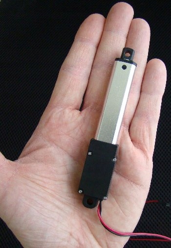Актуаторы действительно маленькие, вот сравнительная фотография актуатора с ходом 50 мм, сделанная на руке.
