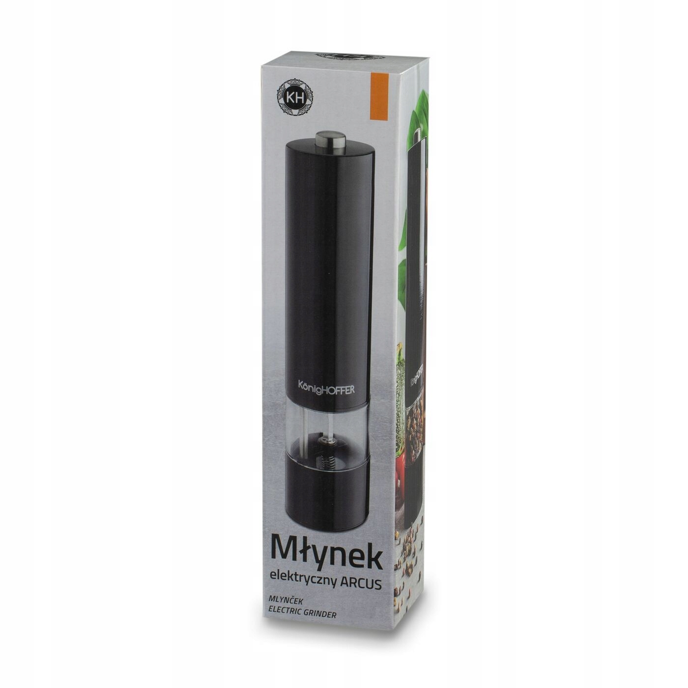 Черная электрическая мельница для специй Konighoffer Arcus позволяет за короткое время получить необходимое количество специй. Изделие также позволяет точно отмерить молотый перец или соль, и его можно использовать одной рукой. Его дизайн прост и имеет современную эстетику. Измельчитель оснащен измельчающим механизмом с электроприводом, работающим от аккумуляторов. Борфрезы керамические, точные и могут регулировать степень помола. Просто нажмите кнопку в верхней части корпуса, чтобы начать работу. Вы можете легко проверить количество соли или перца внутри и спланировать покупку, чтобы пополнить запас. Он также имеет подсветку области, которую вы приправляете, чтобы вам было легче дозировать. Модель питается от 4 батареек типа АА - они не входят в комплект и приобретаются отдельно.