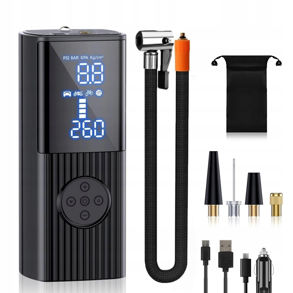 - Электрический воздушный насос имеет встроенную батарею с очень большой емкостью 6000 мАч и оснащен интерфейсом типа C и шнуром питания для интерфейса автомобиля. Зарядка легкая и быстрая. Это самый маленький интеллектуальный воздушный насос, который вы можете получить наилучшим образом. Размеры составляют только 17 x 7 x 5 см. Накачание.