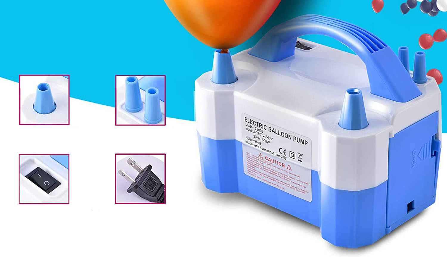 Электрический насос позволяет надувать два шара одновременно за 3 секунды.