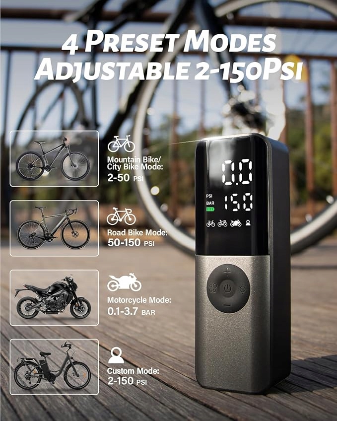 ✅ Зарядка: USB-C (полный заряд позволяет вам надуть до 6 дорожных шин или 9 шин MTB)