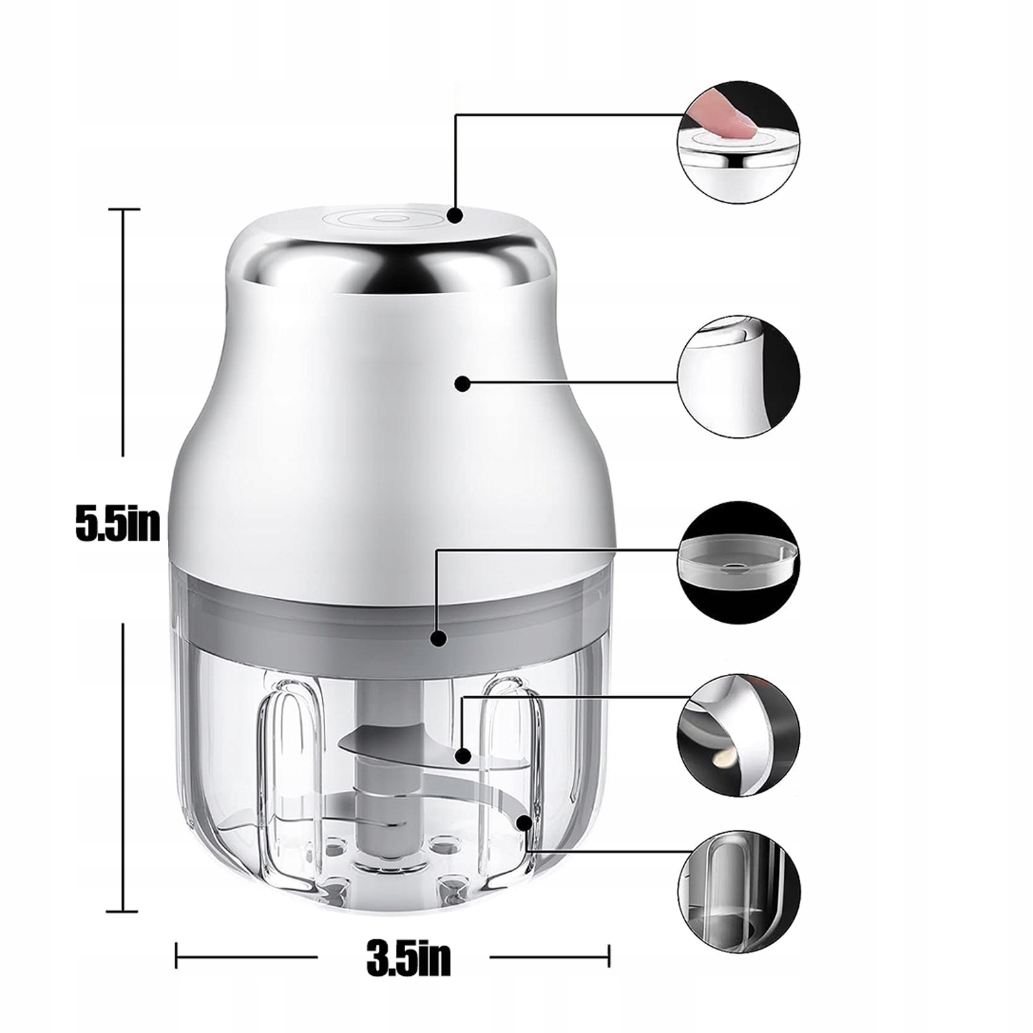 - ✅-включите вручную вставьте пищу или ингредиенты в мини-электрическую чесночную дробилку, закрыть крышку и нажимайте кнопку, 20 секунд достаточно, чтобы автоматически и равномерно нарезать/размолоть/смешивать широкий ассортимент пищевых продуктов, сэкономив и время в руках.
