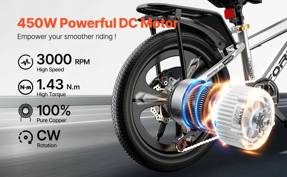 Высокая эффективность и эффективность: мощный двигатель Vevor DC обеспечивает 450 Вт и эффективно работает с эффективностью конверсии ≥ 78%. Это гарантирует надежную скорость даже в трудной местности и снижении потребления энергии. Идеально подходит для проектов DIY, связанных с электрическими велосипедами, скутерами и другими электромобилями, которые требуют высокой эффективности.