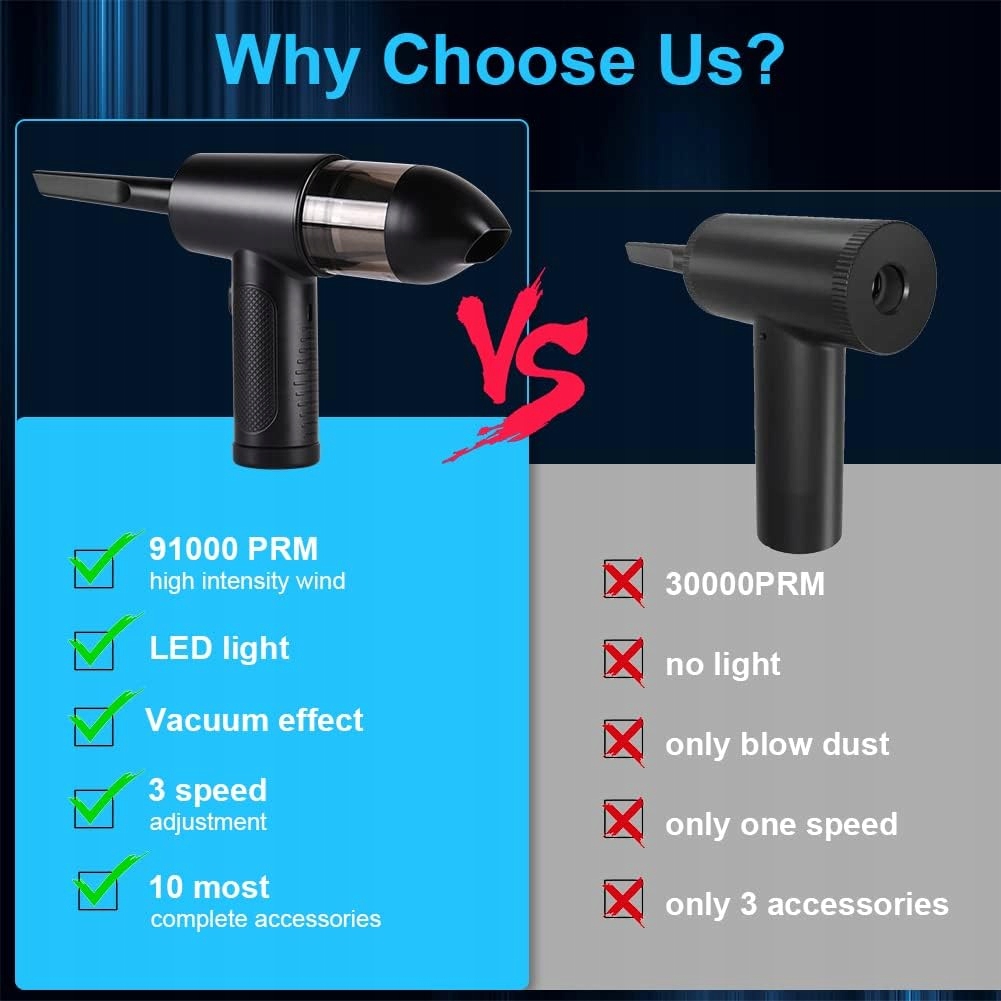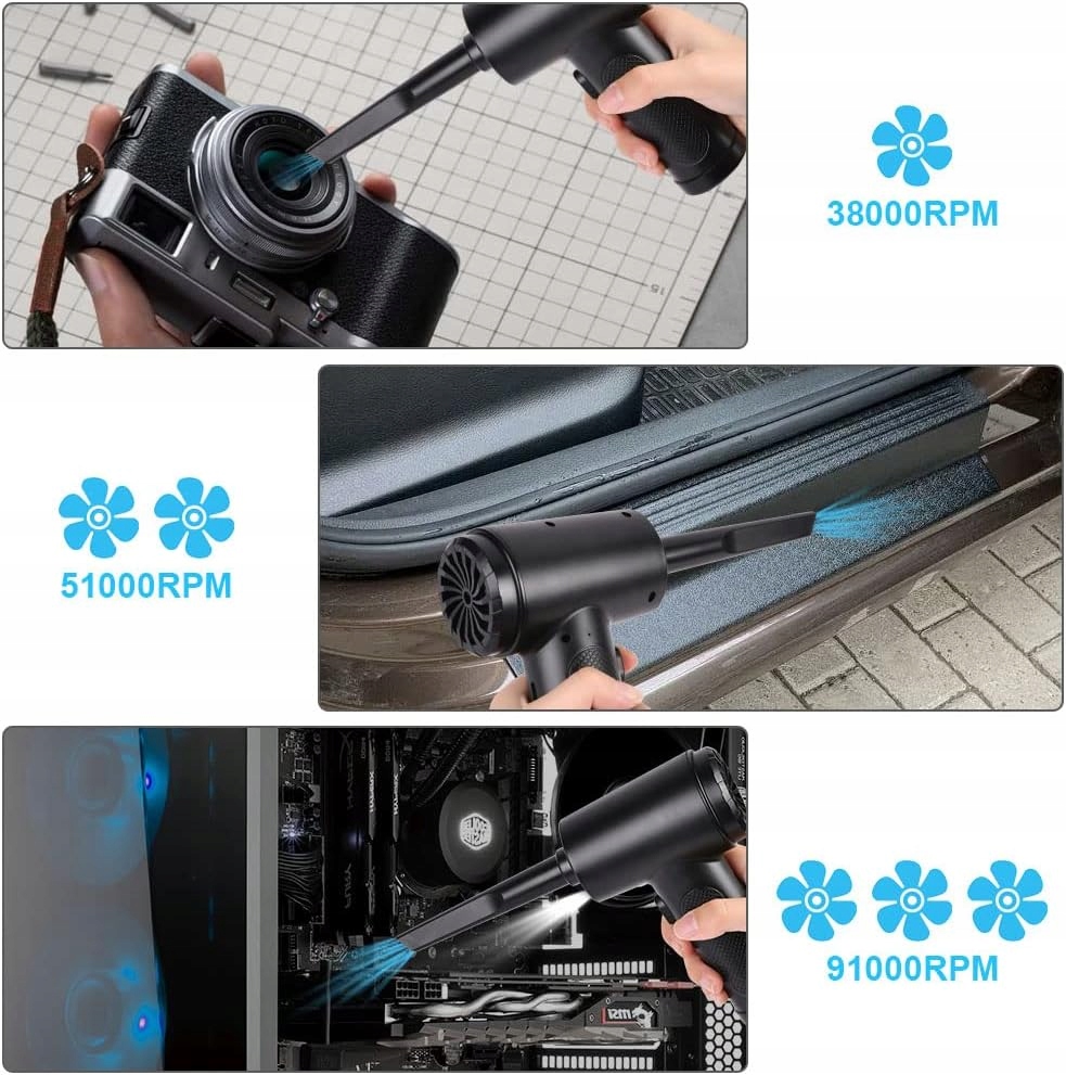 ⭕ Ручной очиститель вакуумного вентилятора имеет максимальную скорость 91000 об/ мин и обеспечивает супер сильный воздушный поток для глубокой очистки.