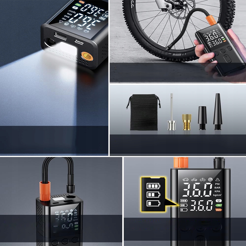 Электрический велосипедный насос с компактным размером и простой конструкцией, которая легко вписывается в мешки, велосипедные стволы, рюкзаки и автомобили , специально разработанный для путешествий. Кроме того, электрический насос оснащен батареей 6000 мАч, поэтому вам не нужно беспокоиться о том, что батарея будет исходить при перекачке шин