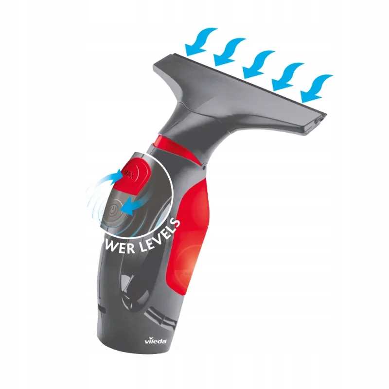 Электрический скребок для окон от Vileda имеет подвижную головку, которая обеспечивает идеальный доступ к очищаемым поверхностям. Гибкая насадка Windomatic Power также обеспечивает точное достижение углов и краев > уже при первом засасывании.
