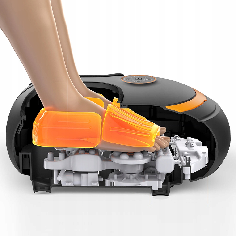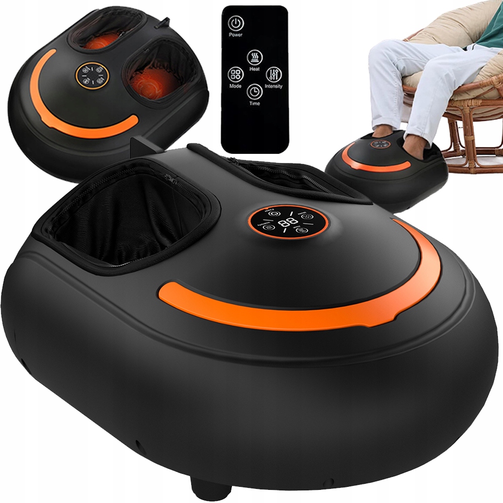 - Этот черный массажер для ног шиацу с функцией нагрева предлагает 4 режима массажа, 5 уровней интенсивности сжатия воздуха, 3 уровня температуры нагрева, несколько настроек времени, сенсорный ЖК-экран и беспроводной пульт дистанционного управления.