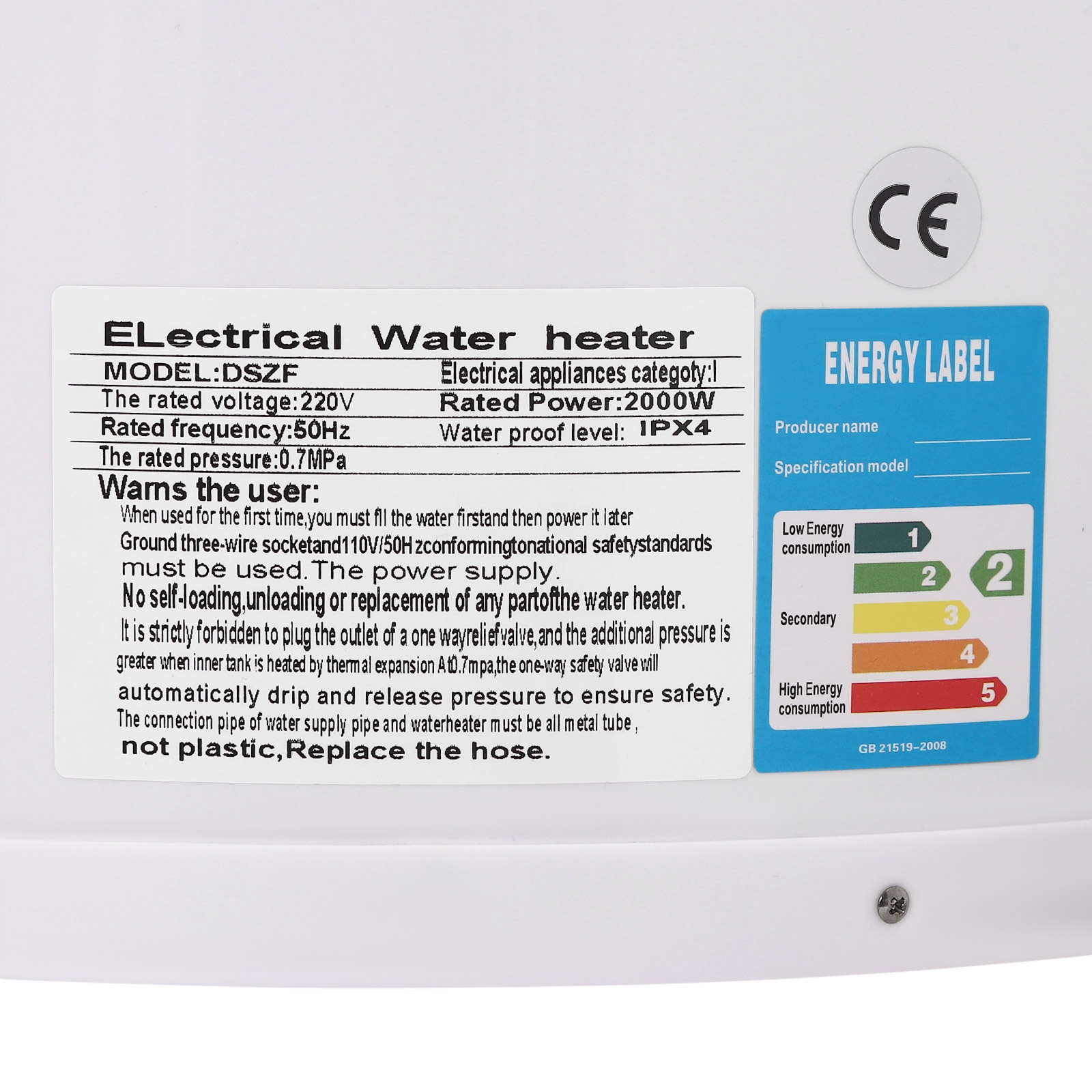 Электрический резервуар водонагреватель, водонагреватель 2000W 60L