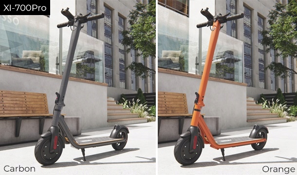 Модель XI-700pro, оснащенная электродвигателем мощностью 700 Вт, разгоняется до 30 км/ч за несколько секунд. Высококачественная батарея 36 В/7,8 Ач обеспечивает запас хода до 30 километров. Благодаря интеллектуальной системе быстрой зарядки самокат заряжается на 80% всего за 30 минут. Увеличение дальности за счет восстановления энергии. Встроенная система рекуперации использует энергию торможения или движения на спуске для зарядки аккумулятора. С помощью приложения вы можете изменить настройки самоката (например, максимальную скорость, защиту от кражи, режим энергосбережения). Также самокат оснащен светодиодной фарой, стоп-сигналом, указателем поворота, держателем для телефона и звонком.