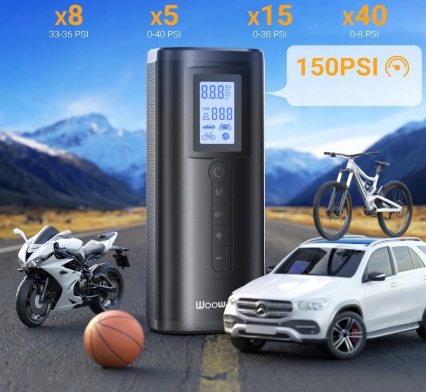 ✅Этот компактный воздушный компрессор 3-в-1 — ваш надежный спутник в путешествии — для вашего велосипеда, автомобиля, скутера и многого другого!