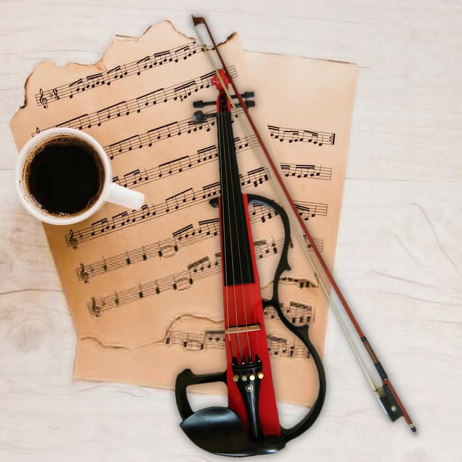 [Материал] Электрическая скрипка изготовлена из материала из твердого древесины, поверхность окрашена и гладкой, звук будет более четким, стабильным, ярким, подходящим для долгосрочных стажировок.