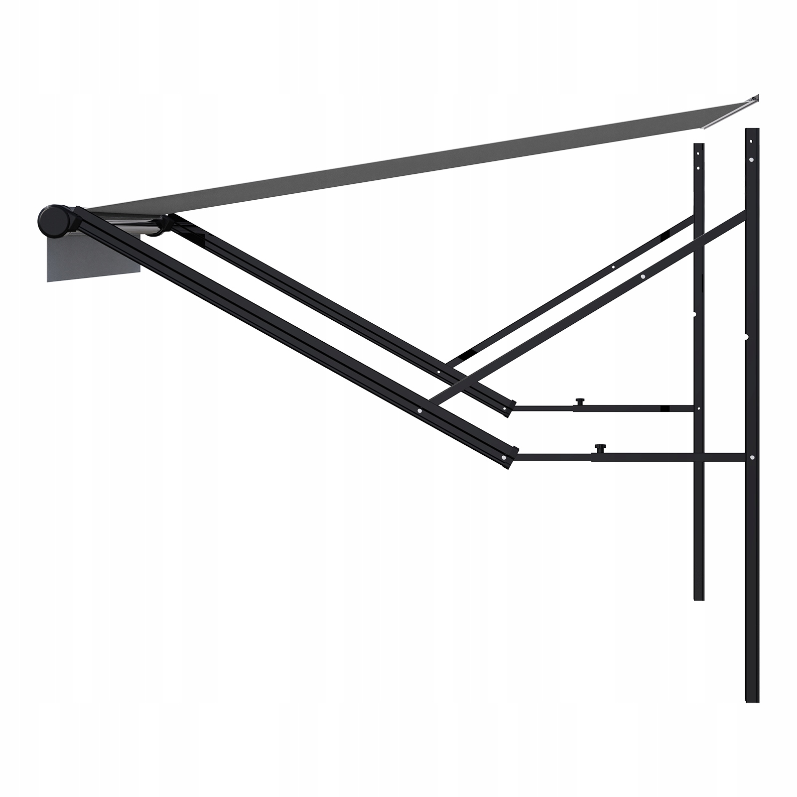 Регулируемые опорные рычаги позволяют наклонять одну сторону, обеспечивая быстрый слив воды. Благодаря этому ткань остается сухой и чистой, поэтому вы сможете использовать ее дольше. Эта функция помогает предотвратить повреждения, увеличивает срок службы маркизы и облегчает ее обслуживание.