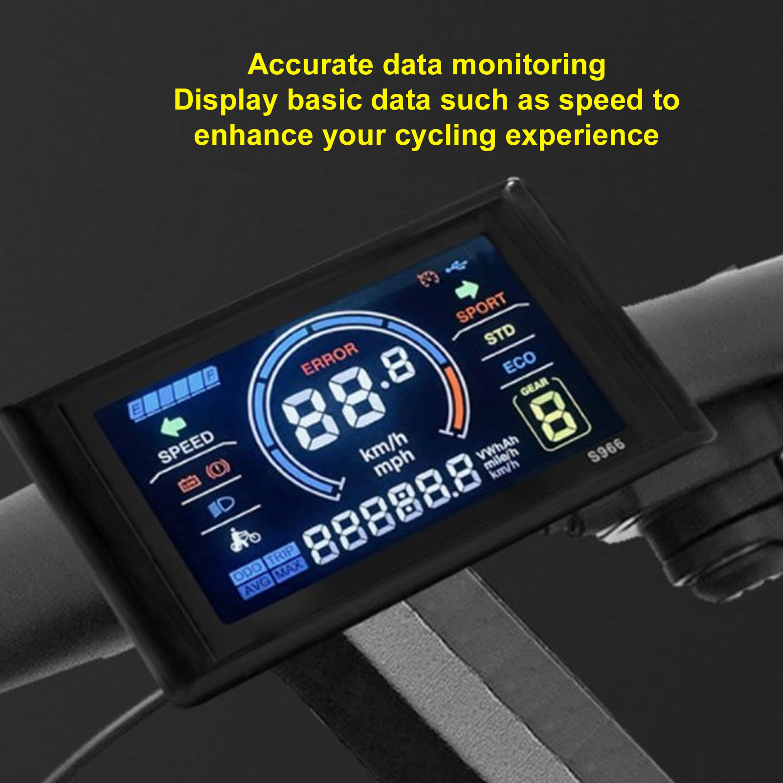 1. [Цветный ЖК -дисплей] Электрический дисплей велосипеда имеет цветный ЖК -экран, который четко и интуитивно отображает состояние вождения, что позволяет легко просматривать данные.