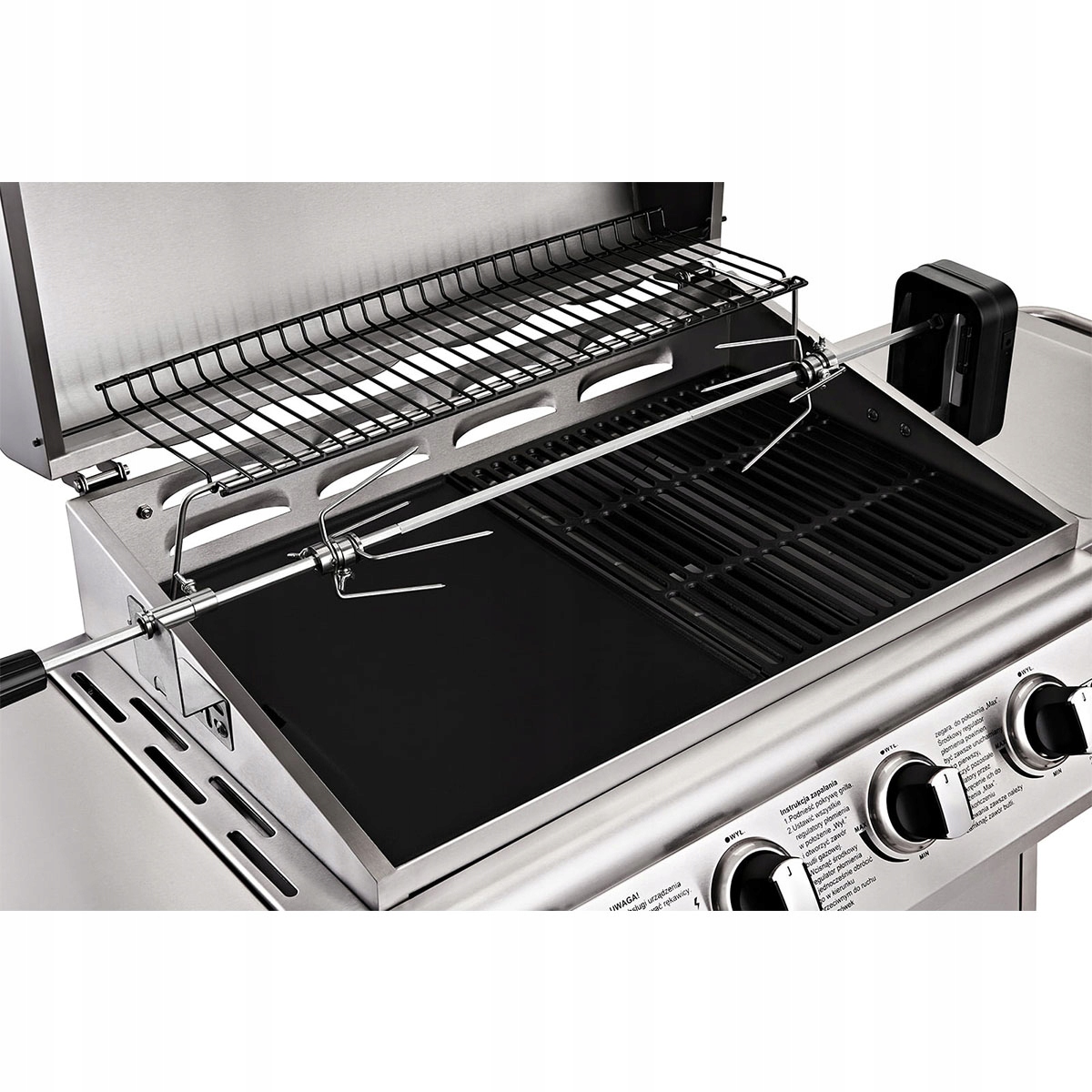 Универсальная конструкция гриля позволяет установить его практически на любой тип гриля. Ненагревающаяся ручка защищает от ожогов. Всего одна кнопка для включения устройства делает его чрезвычайно простым в использовании. Удобный в использовании и изготовленный из качественных материалов вертел станет идеальным выбором для сезона шашлыков!