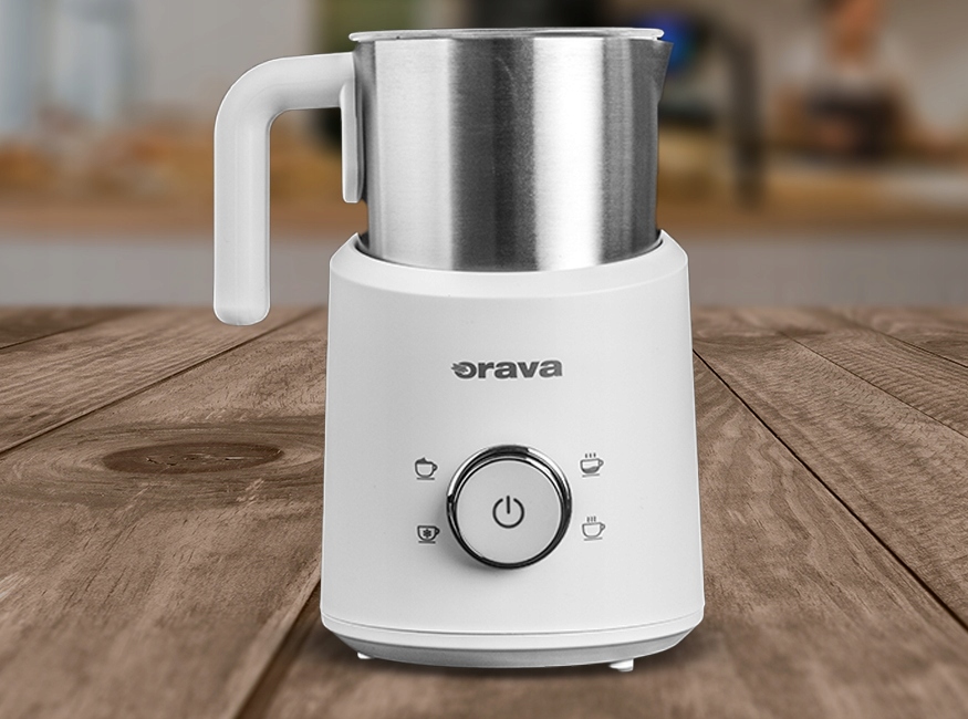 Электрический вспениватель молока Orava — это сочетание элегантности и эффективности, позволяющее готовить популярные кофейные напитки в домашних условиях.