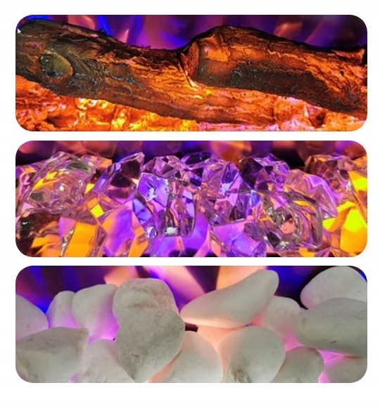 - 3 камина в комплекте: дрова, кристаллы, камни