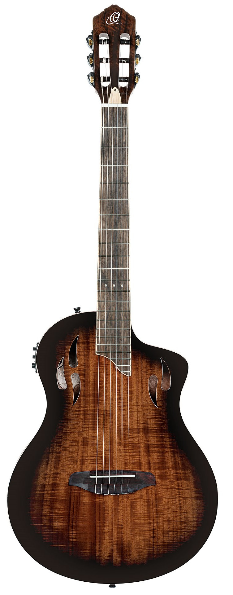 Ortega RTPDLX-ACA TourPlayer DeLuxe — электроклассическая гитара, отличающаяся не только уникальным дизайном, но и сложным и благородным звучанием. Это инструмент, созданный профессионалами для профессионалов, предлагающий беспрецедентный комфорт игры, материалы превосходного качества и нюансированное звучание. Изготовленный из комбинации массива акации и окуме, он обеспечивает превосходную долговечность и придает звуку теплоту и динамику.