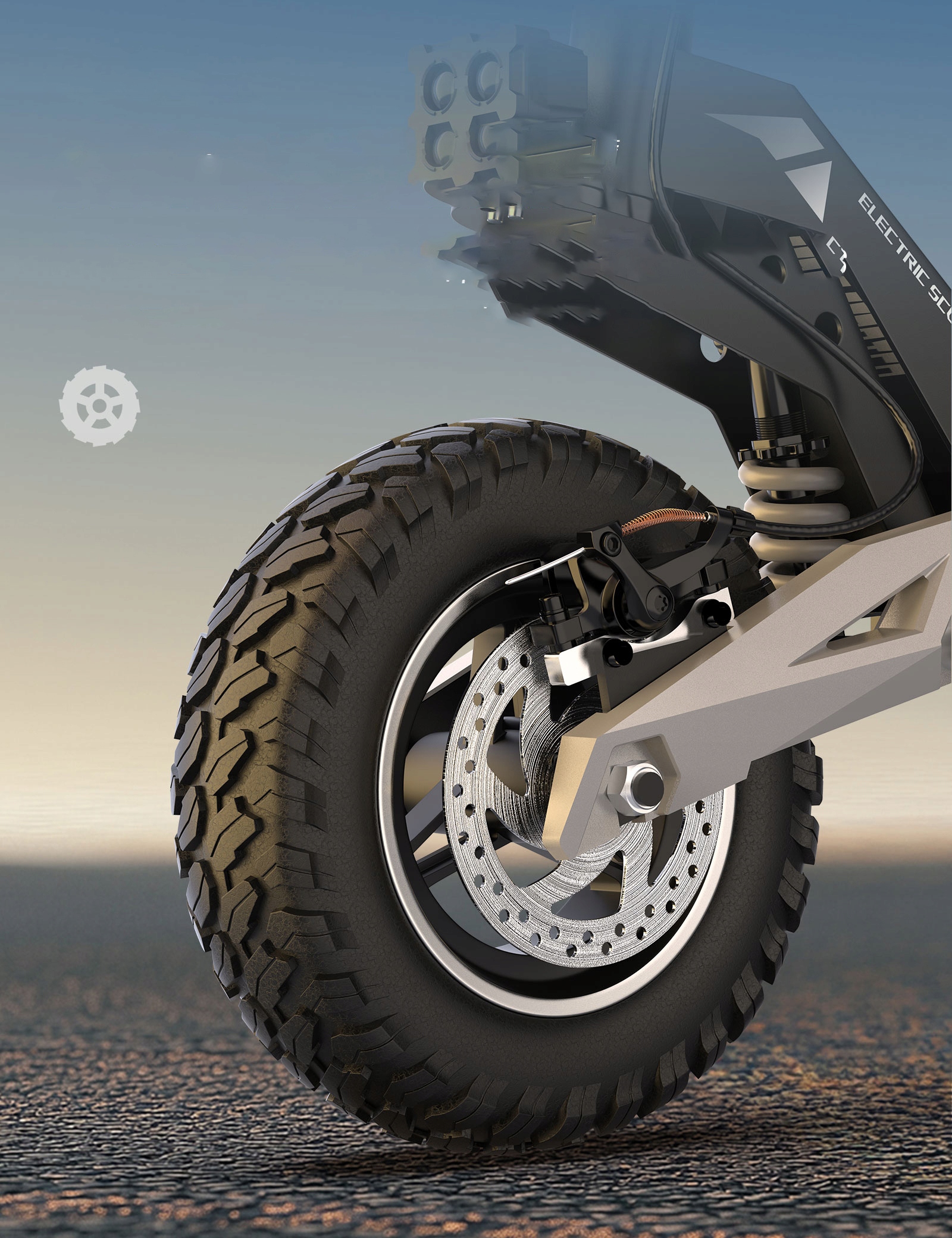 - ✔️ 11-дюймовые внедорожные шины - комфорт даже за городом